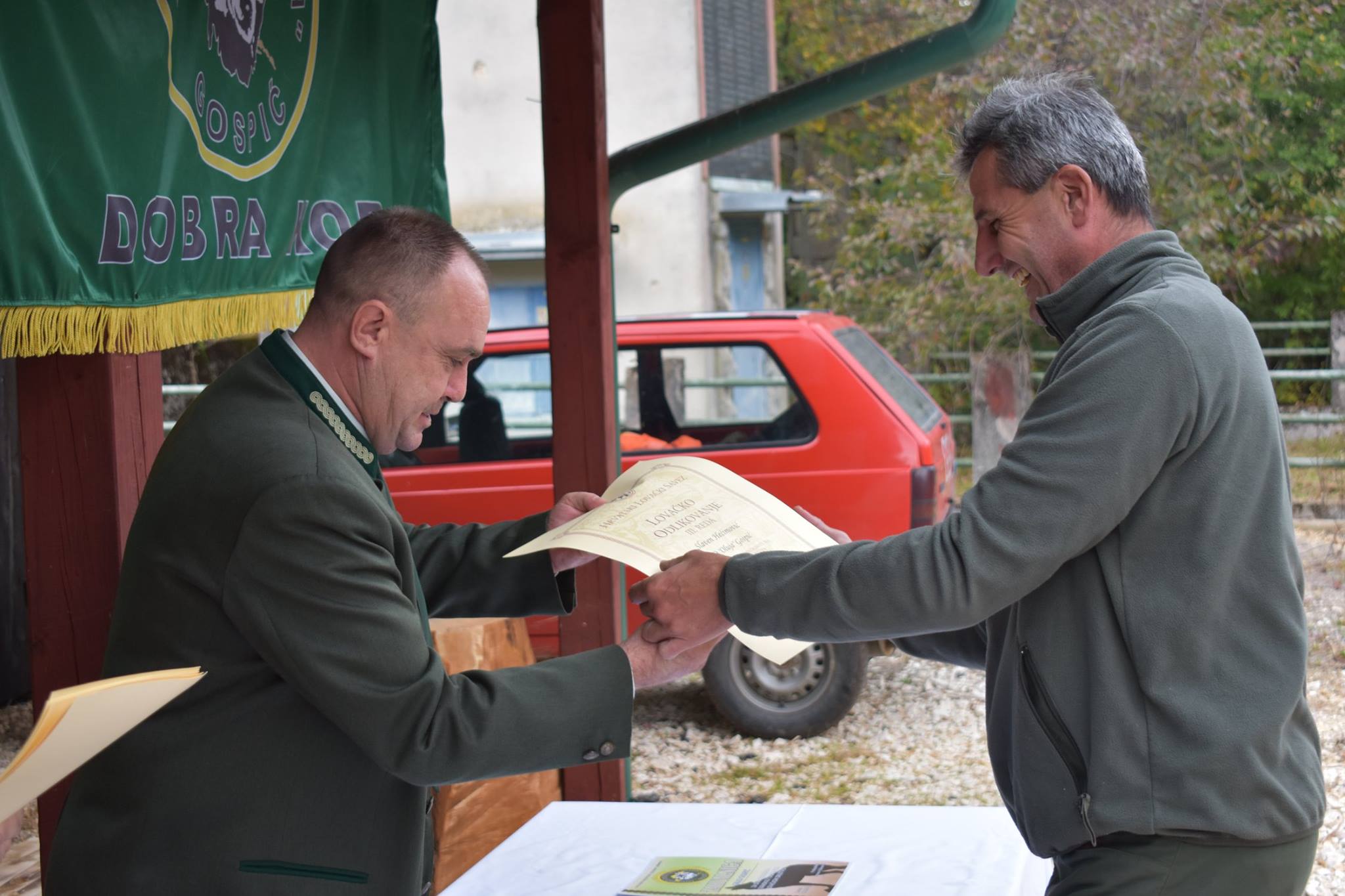 U drugom dijelu proslave domaćini i gosti okupili su se kod Lovačkog doma u Ostrvici gdje sz dodijeljena su lovačka odličja i priznanja mnogim lovcima, njihovim prijateljima te pravnim subjektima bez kojih bi redovno funkcioniranje ove lovačke družine bilo svakako otežano. U ime udruge laureatima se zahvalio predsjednik LD „Oluja“ Antonio Stilinović Toni, dopredsjednik Ivan Rukavina Furciz i tajnik Igor Romac. Dodijeljena su 23 priznanja i šest lovačkih odličja. Na koncu današnje svečanosti nazočnima se obratio tajnik Županijskog lovačkog saveza Mile Ugarković. Istaknuo je važnost rada ove lovačke udruge koja je unatoč relativno kratkom vremenu postojanja pokazala odlične rezultate, pri čemu svakako treba istaknuti i sve više mladih lovaca u njihovim redovima.