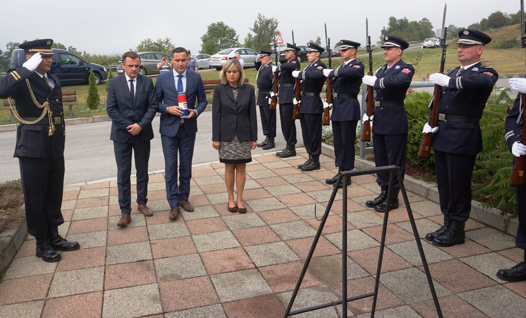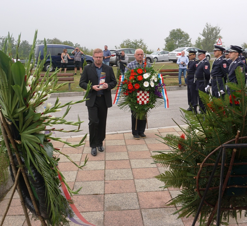 Vijenac je položio i zapalio svijeću u spomen svojim poginulim kolegama Darko Murat, redarstvenik koji je toga kobnog 24. kolovoza 1991. godine teško ranjen jedini preživio podmuklu zasjedu srpskih paravojnih postrojbi.