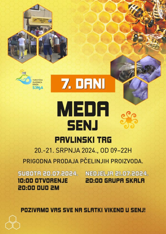 Udruga pčelara Drača u suradnji s Turističkom zajednicom Grada Senja organizira 7. Dane meda koji će se održati ovog vikenda, 20. i 21. srpnja 2024. godine. Ovaj događaj će okupiti desetak izlagača iz Senja i okolice koji će posjetiteljima predstaviti bogat izbor pčelinjih proizvoda po promotivnim cijenama. Na štandu Udruge, osim što će posjetitelji imati priliku kupiti proizvode, moći će sudjelovati i u kratkim edukativnim sesijama o pčelama te degustirati razne pčelinje proizvode.