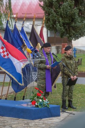–Prije 29 godina, u vrijeme Predsjednika dr. Franje Tuđmana i ministra obrane Gojka Šuška, trebalo se oduprijeti najvećoj opasnosti po našu mladu državu. Tada je osnovana 9. gardijska brigada, naši „Vukovi“. Svojim nemjerljivim doprinosom ispisala je najsvjetlije stranice povjesti Domovinskog rata. Bila je to jedna od legendarnih brigada koje su nakon mnoštva slavnih bitaka izvojevala slobodu Hrvatske. Upravo ste vi nazočni veterani svjedoci tih vremena koji trebate mladim generacijama prenositi uspomene na te teške, ali časne dane. S posebnim pijetetom podsjećamo se 56 poginulih pripadnika ove brigade.