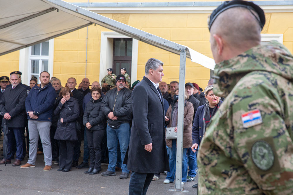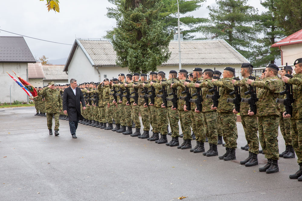 Potom su iz ruku Predsjednika Milanovića, ministra Medveda i visokih vojnih dužnosnika, crne beretke, simbole legendarnih Vukova, primili novi pripadnici motorizirane bojne „Vukovi“.