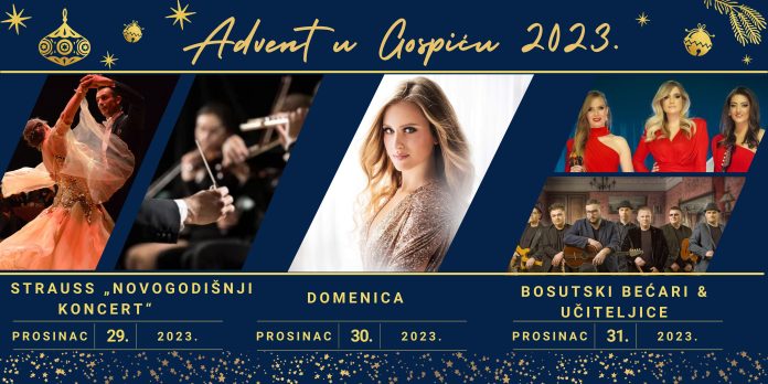 Kraj godine na Adventu u Gospiću obilježit će bogat program događanja za sve uzraste. Petak 29. prosinca obilježit će poseban kulturni događaj – Strauss „Novogodišnji koncert“ simfonijskog orkestra Kharkivskog nacionalnog akademskog kazališta, spektakl ozbiljne glazbe i plesa, bal kakvog nemamo često prilike vidjeti. Na koncertu će solisti i simfonijski orkestar Kharkivskog nacionalnog akademskog kazališta opere i baleta pod ravnanjem dirigenta Dmitra Morozova izvoditi djela Johana Straussa.