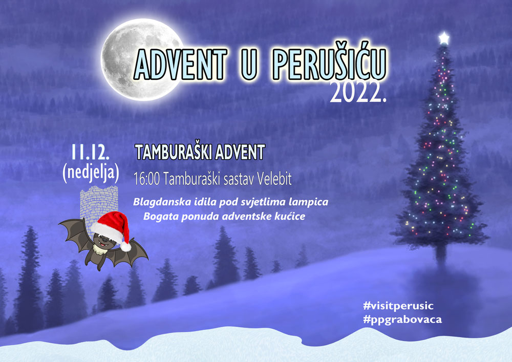Tamburaški adventski dan koji je planiran za subotu 10. prosinca odgađa se za nedjelju 11. prosinca 2022. zbog loših vremenskih uvjeta. Nastup Tamburaškog sastava Velebit predviđen je u 16 sati pa će posjetitelji u nedjelju, osim u zvucima tamburice, moći uživati u bogatoj ponudi adventske kućice te blagdanskom uređenju perušićkog parka.