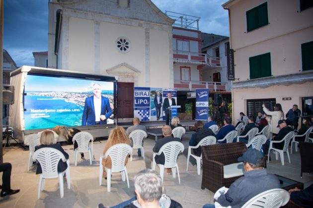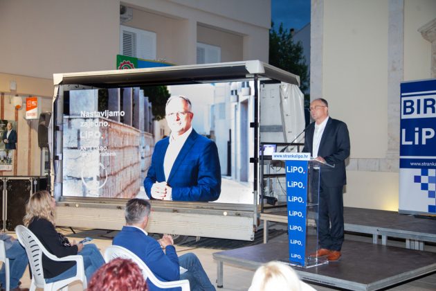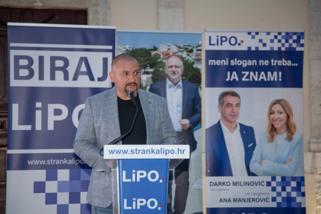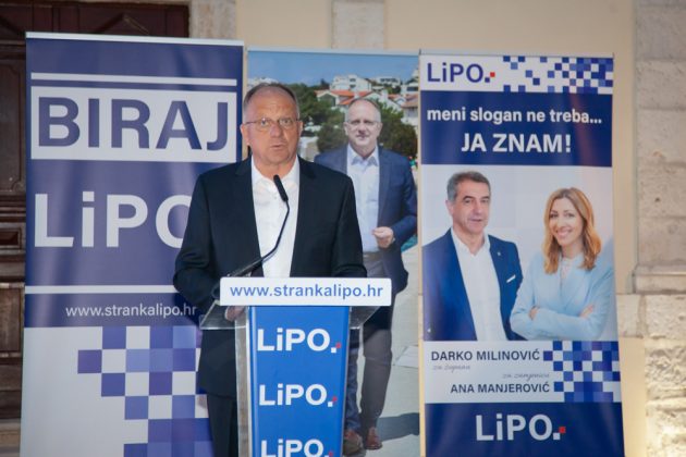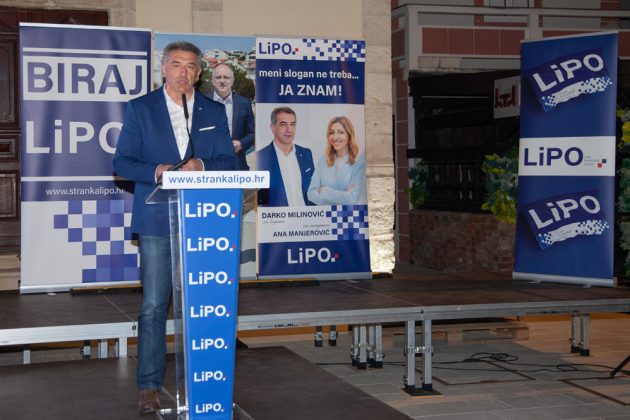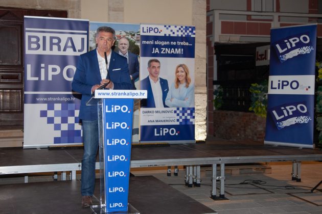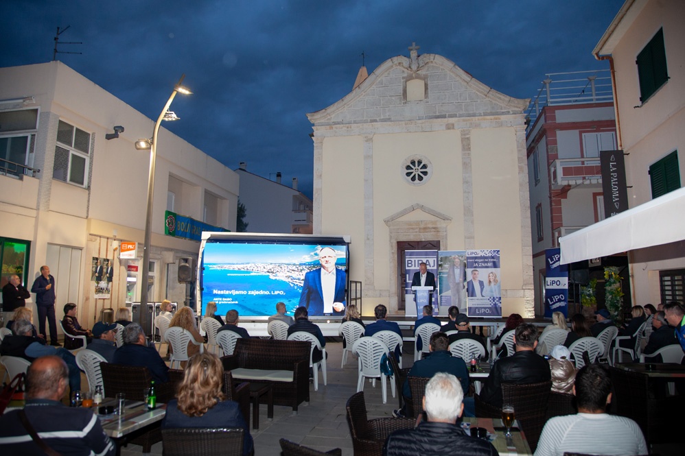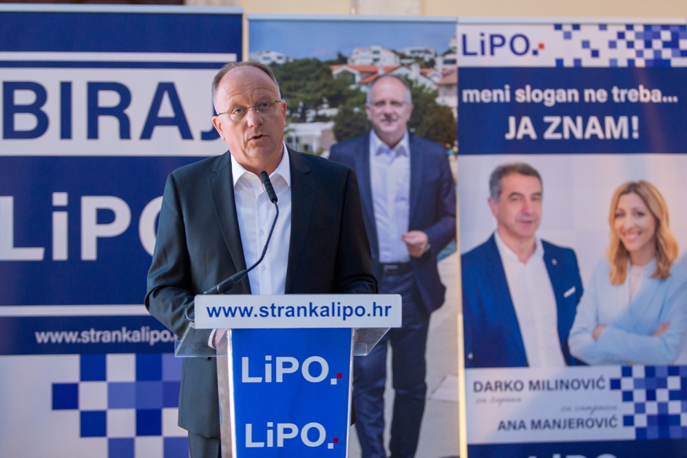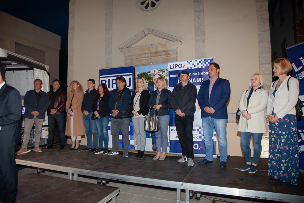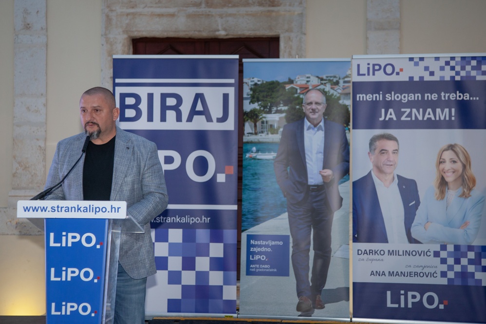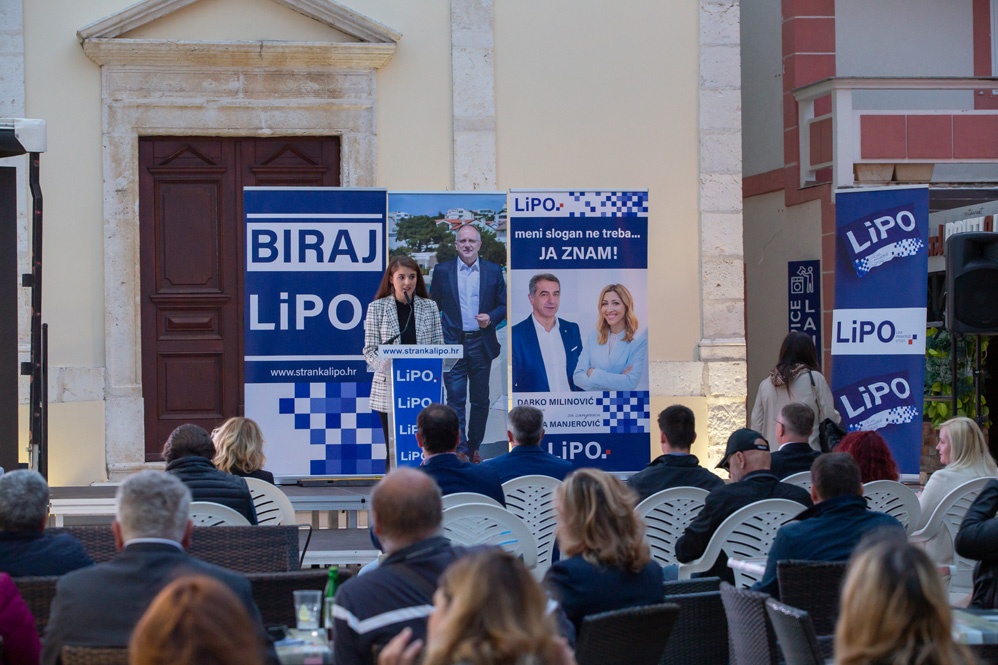 Ča van se čini, kako ovaj likota, vaš župan, vašim dijalektom, vašim srcem voli Novalju, započeo je govor predsjednik stranke LiPO Darko Milinović i dobio zbog novaljskog dijalekta ovacije. „Voditeljica Ana upitala je kada je ona recitirala ovu pjesmu, sto politika ima s poezijom,“ rekao je Milinović. „Ima, ima,“ obratio se Milinović Ani,“ kada tu poeziju piše najjača politička stranka u Ličko-senjskoj županiji stranka LiPO. Mi smo kao poezija iz razloga što se nismo okupili i nismo stvorili najjaču političku stranku na platformi protiv bilo koga već na platformi okupljanja i zato danas imamo gotovo 2,5 tisuće članova. Meni slogan ne treba, ja znam da Ante i ja idemo zajedno do pobjede u nedjelju ,“zaključio je Milinović.