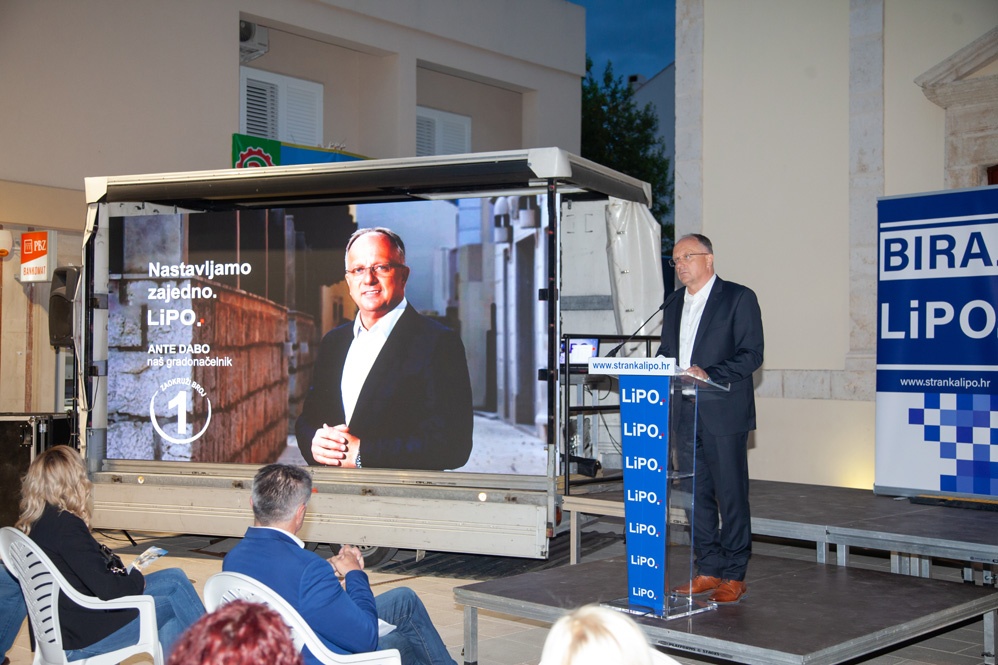 „Ne dozvolite da ona rušilačka politika, politika dijeljenja ima bilo kakav utjecaj u političkom životu našeg grada i županije. Župan Milinović i ja idemo zajedno dalje jer mnoge projekte kao što je nadogradnja osnovne škole bez sinergije grada i županije ne možemo ostvariti,“ istaknuo je Dabo.Predstavio je i svoju listu satkanu od mladosti, iskustva, stručnosti koja je kroz sve osobine kandidata ogledalo našeg grada.