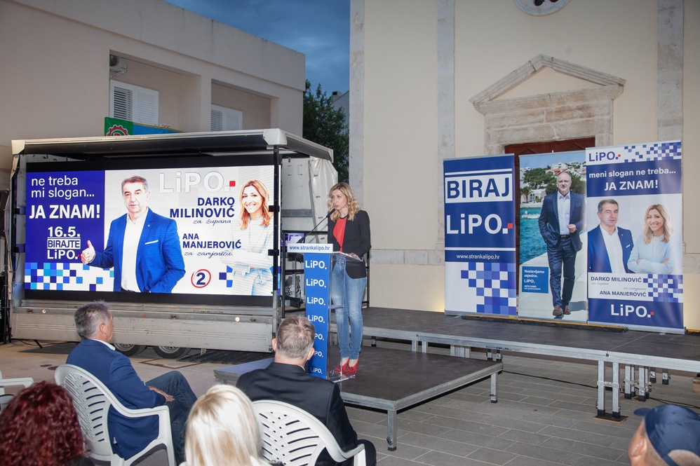 Nakon Brušana Milinović je zajedno sa svojom zamjenicom Anom Manjerović i glavnim tajnikom stranke Alenom Zorićem, nazočio na predizbornom skupu u Novalji. Alen Zorić prvi je pozdravio skup govoreći o političkoj stranci LiPO i njezinom osnutku. Ana Manjerović kandidatkinja za zamjenicu župana napomenula je da je ovo stranka sadašnjosti i budućnosti Ličko-senjske županije, a ogleda se u snazi kroz položaj žena u stranačkoj hijerarhiji.
