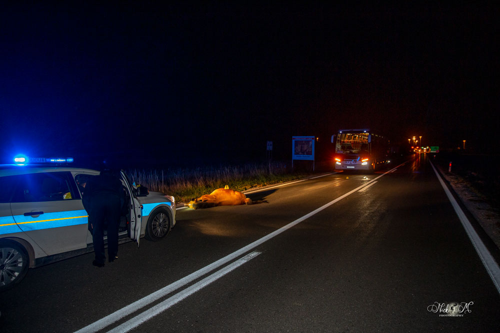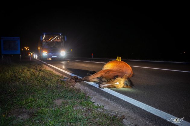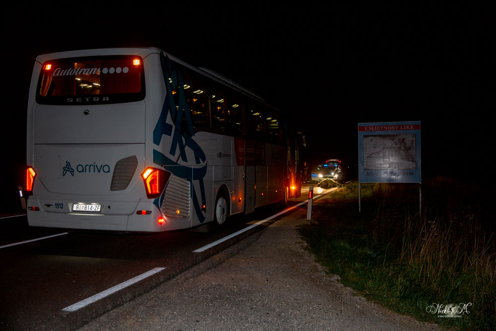 Redovna autobusna linija Split-Zagreb riječkog Autotransa večeras je prekinuta nedaleko od izlaska sa auto-ceste A-1 kada je autobus oko 20 sati naletio na krdo konja lutalica. Tom prilikom nitko od putnika nije ozlijeđen, ali je autobus prilikom sudara usmrtio jednog konja. Šteta izazvana na autobusu svjedoči o silini udarca.