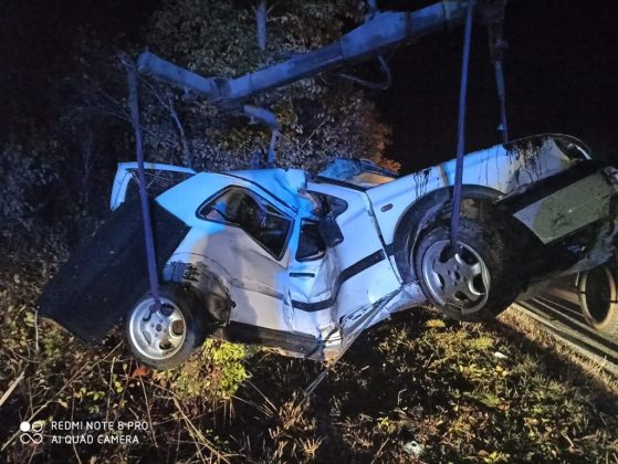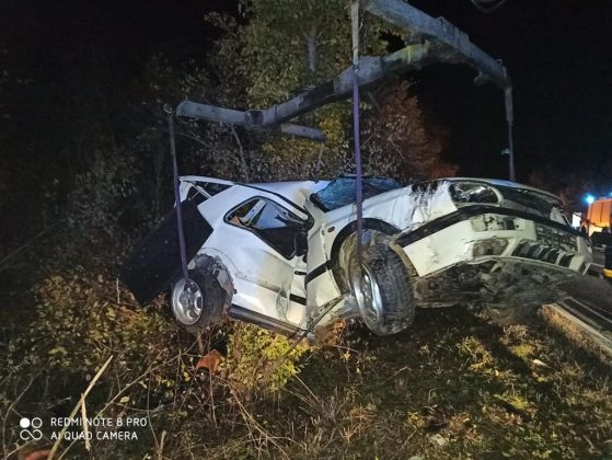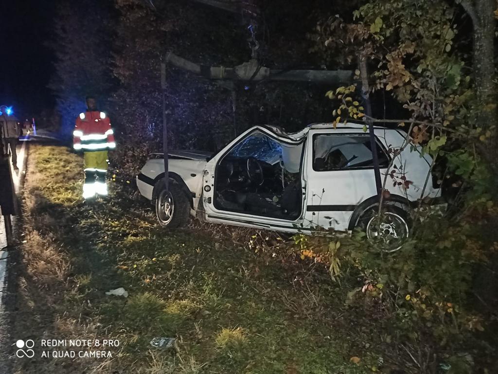 Neslužbeno doznajemo da je vozač 2001. godište. Vatrogasci se bore da izvade tijelo iz automobila koji se još nalazi na drvetu.
