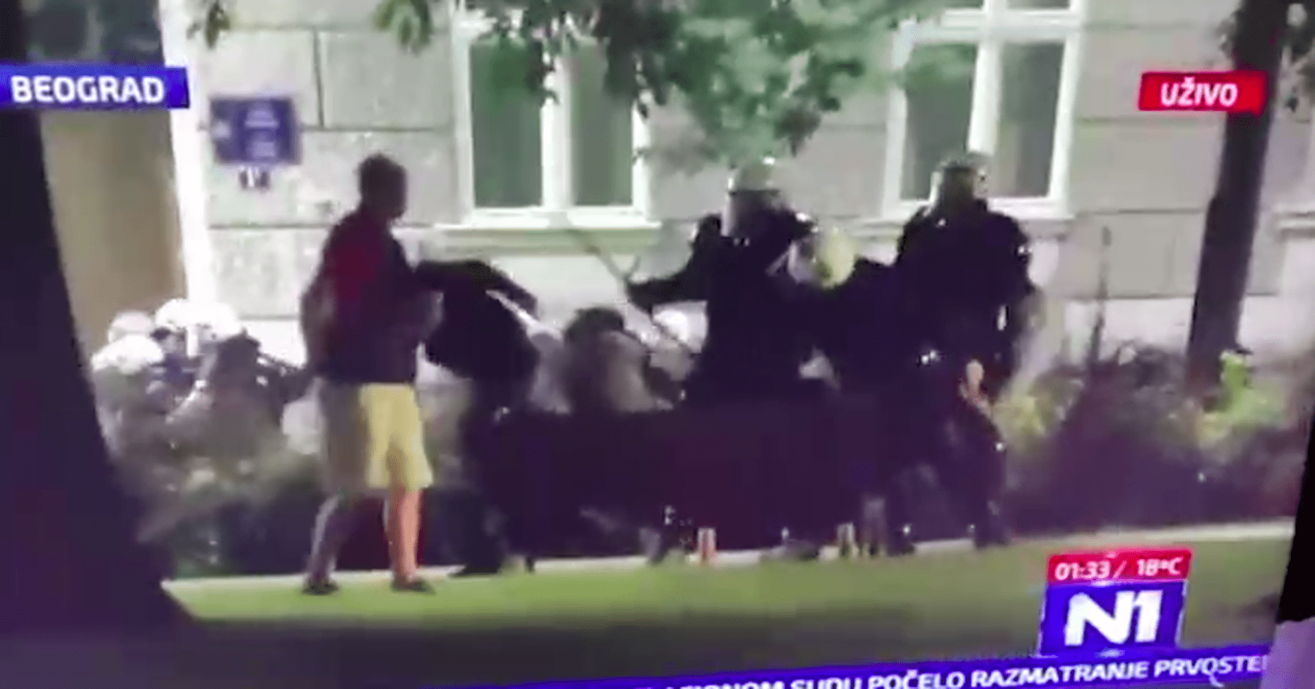 Prosvjednici uzvikuju “Uhitite Vučića“, a policiji poručuju “Idite na Kosovo“.