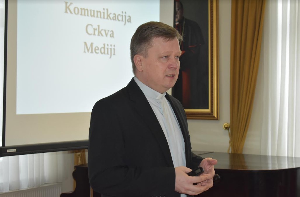 Na temu „Komunikacija, medji, Crkva“ predavanje je održao preč. dr. Krunoslav Novak, generalni tajnik Hrvatske biskupske konferencije, inače profesor na Odjelu za komunikologiju. Današnjem susretu nazočili su predstavnici desetak medijskih kuća s područja Gospićko-senjske biskupije.