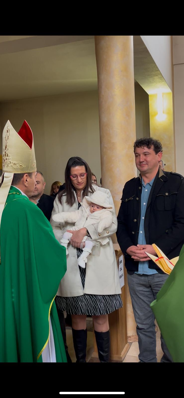 Gospićko-senjski biskup mons. Marko Medo krstio je u nedjelju 19. siječnja 2025. godine u župnoj crkvi sv. Jurja, mč. u Korenici, djevojčicu Emili, peto dijete u obitelji Darka i Sanje Ramljak.