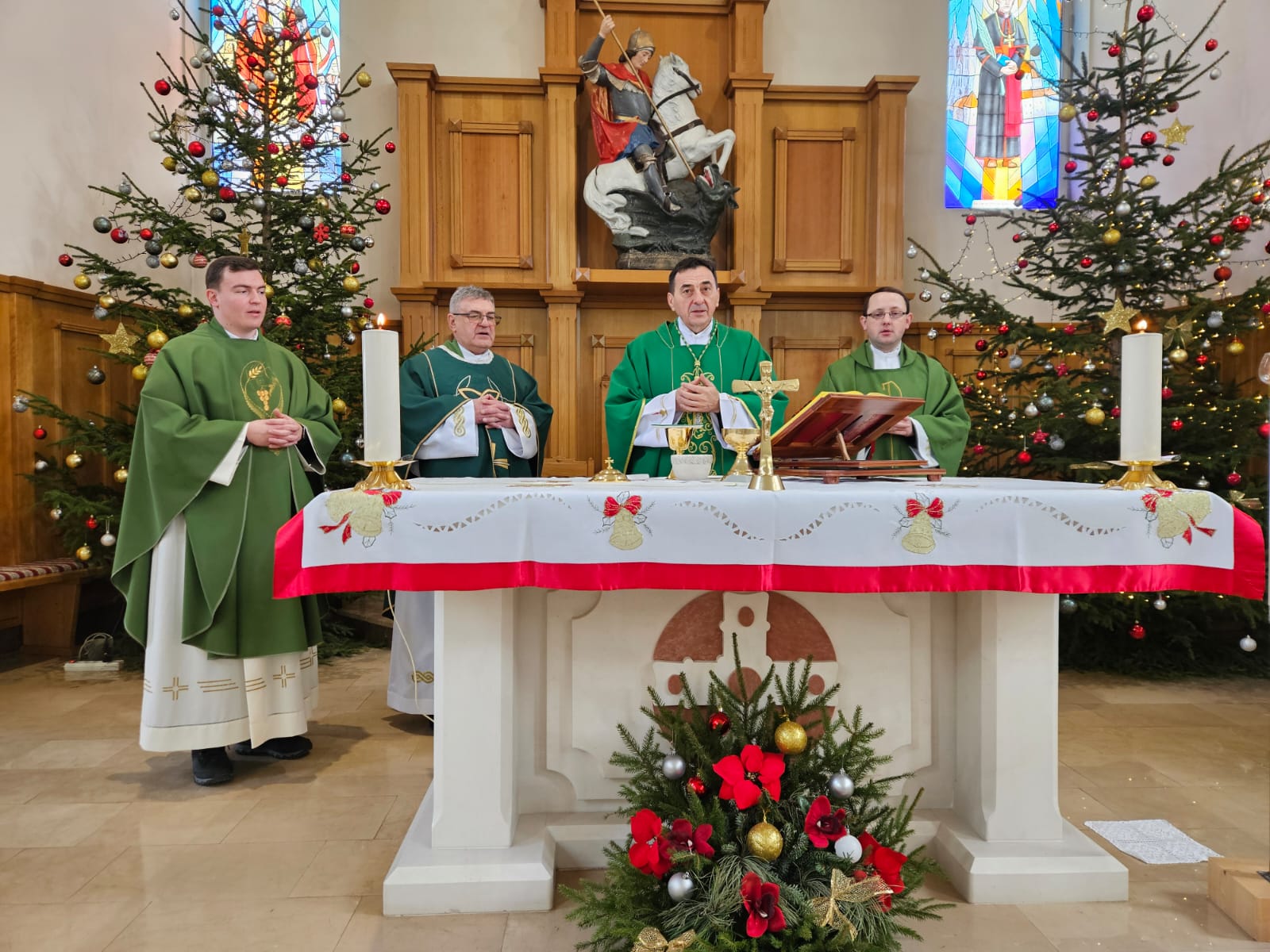 Biskup Medo predslavio je misu u zajedništvu s mjesnim župnikom mons. Milom Čančarom, biskupovim tajnikom i kancelarom preč. Mišelom Grgurićem, župnim vikarom vlč. Karlom Špoljarićem  te okupljenim narodom.
