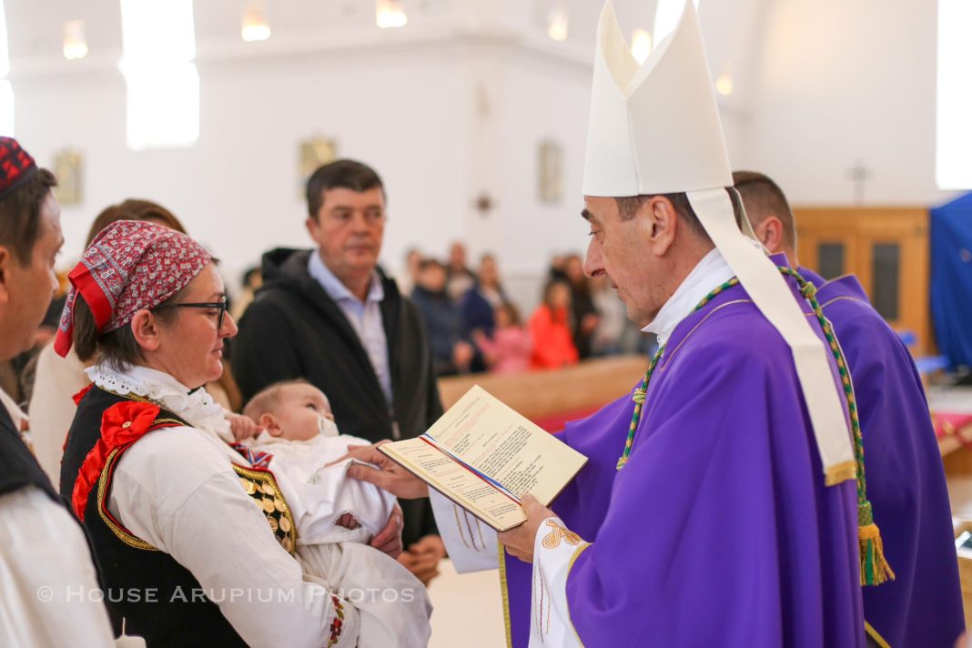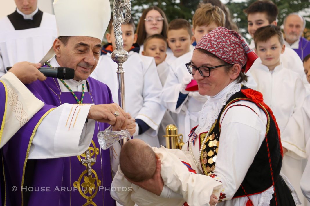 Gospićko-senjski biskup mons. Marko Medo krstio je u nedjelju 22. prosinac 2024. godine, u Crkvi hrvatskih mučenika na Udbini, dječaka Jonu, peto dijete u obitelji Marka i Marijane Šolaja.