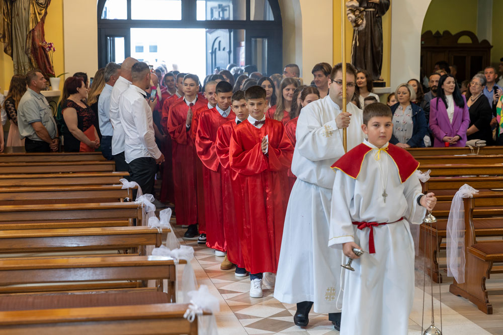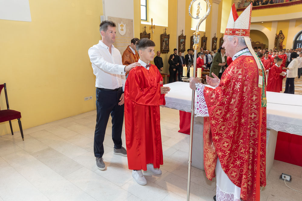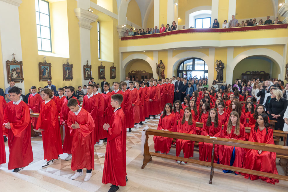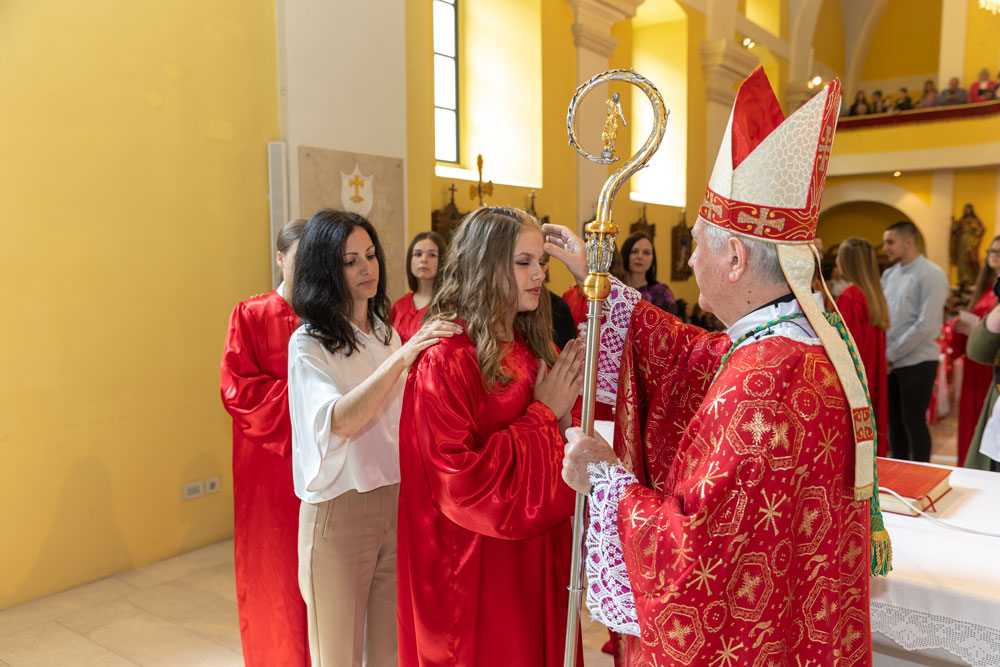 Katedrala Navještenja blažene djevice Marije u Gospiću bila je danas opet premala da bi primila sve one koji su željeli svjedočiti krizmi ili Svetoj potvrdi. Obred krizme predvodio je osobno biskup gospićko-senjski mons. Zdenko Križić, a četvrti sakrament primilo je danas nešto više od 80 djece iz četiri razreda osnovne škole.