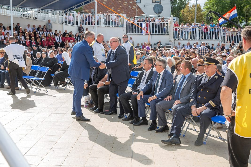 Procesiju do oltara predvodili su biskup gospićko-senjski mons. Zdenko Križić i biskup u miru dr. Mile Bogović, zatim riječki nadbiskup mons. Ivan Devčić, većina hrvatskih biskupa i njihovih izaslanika.