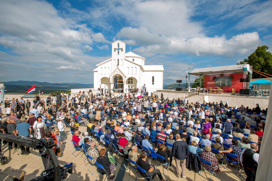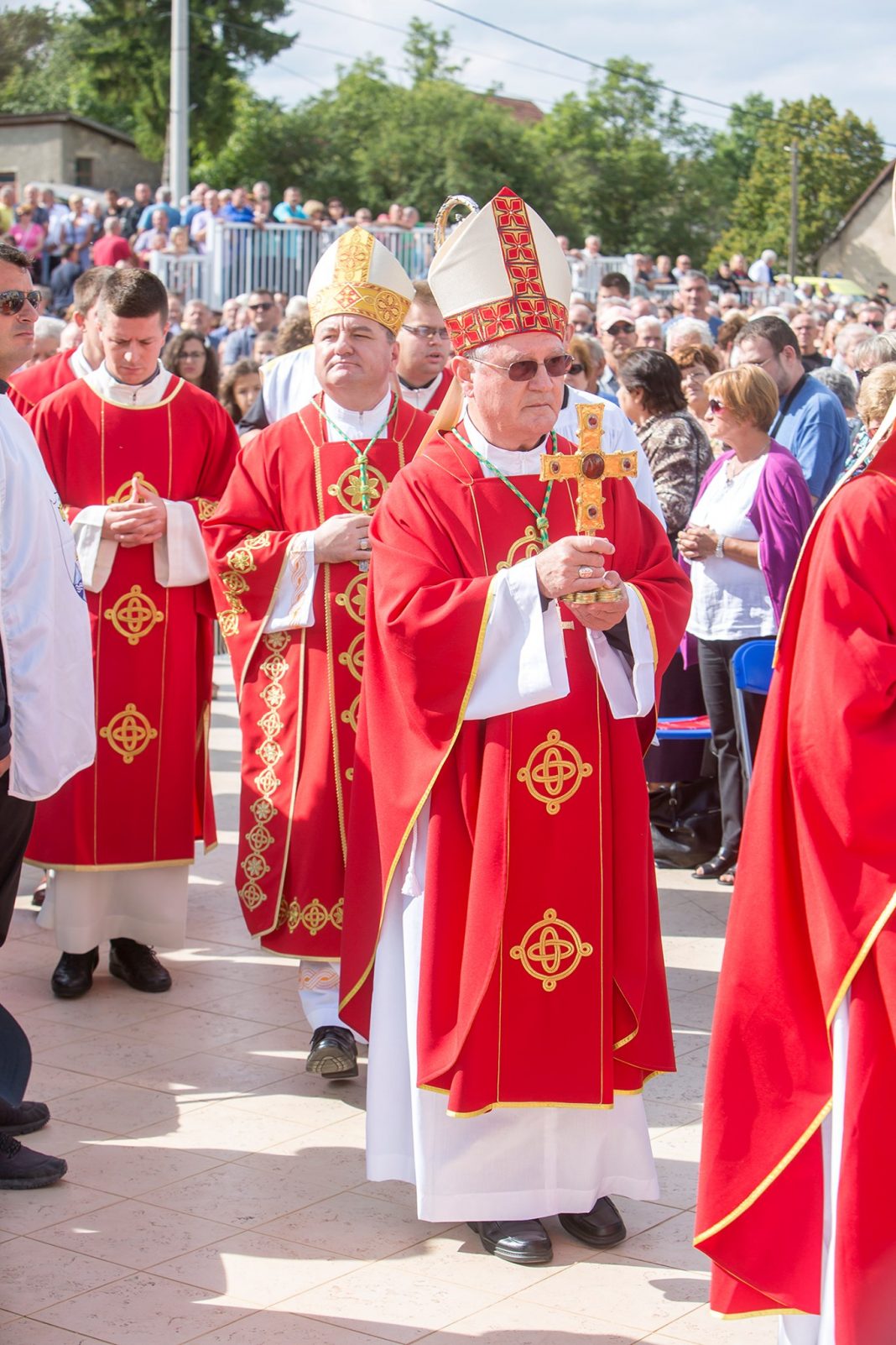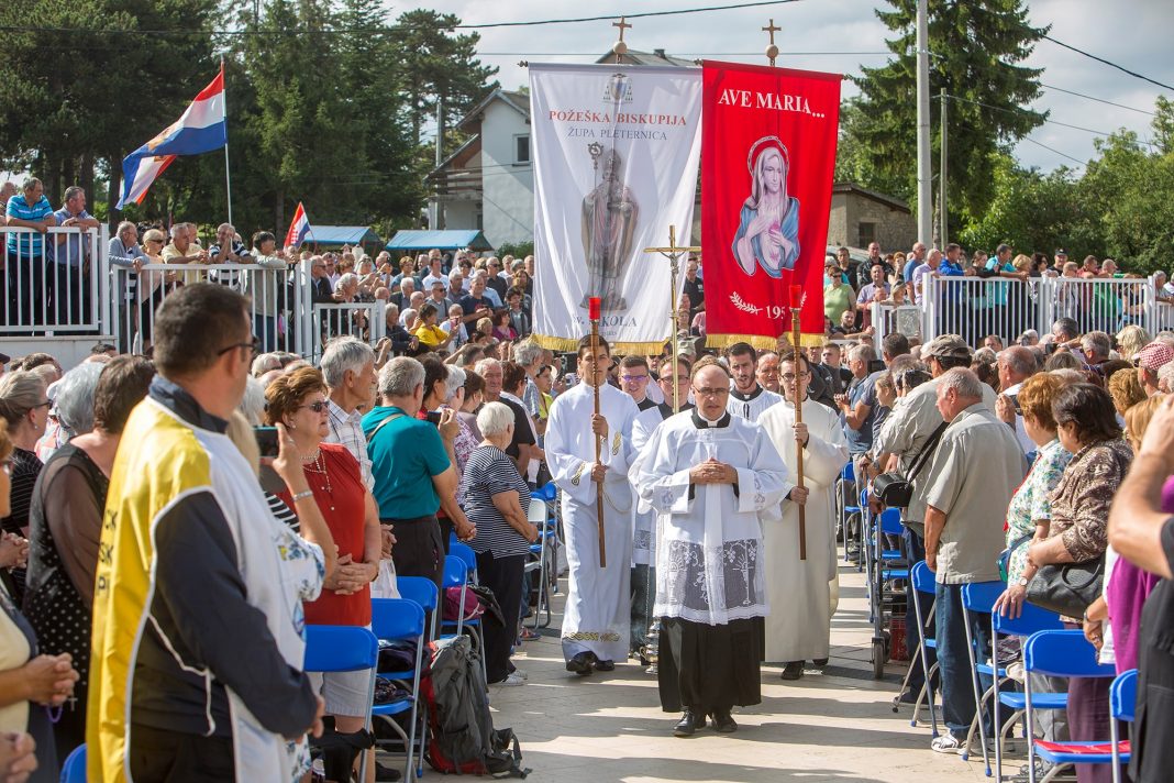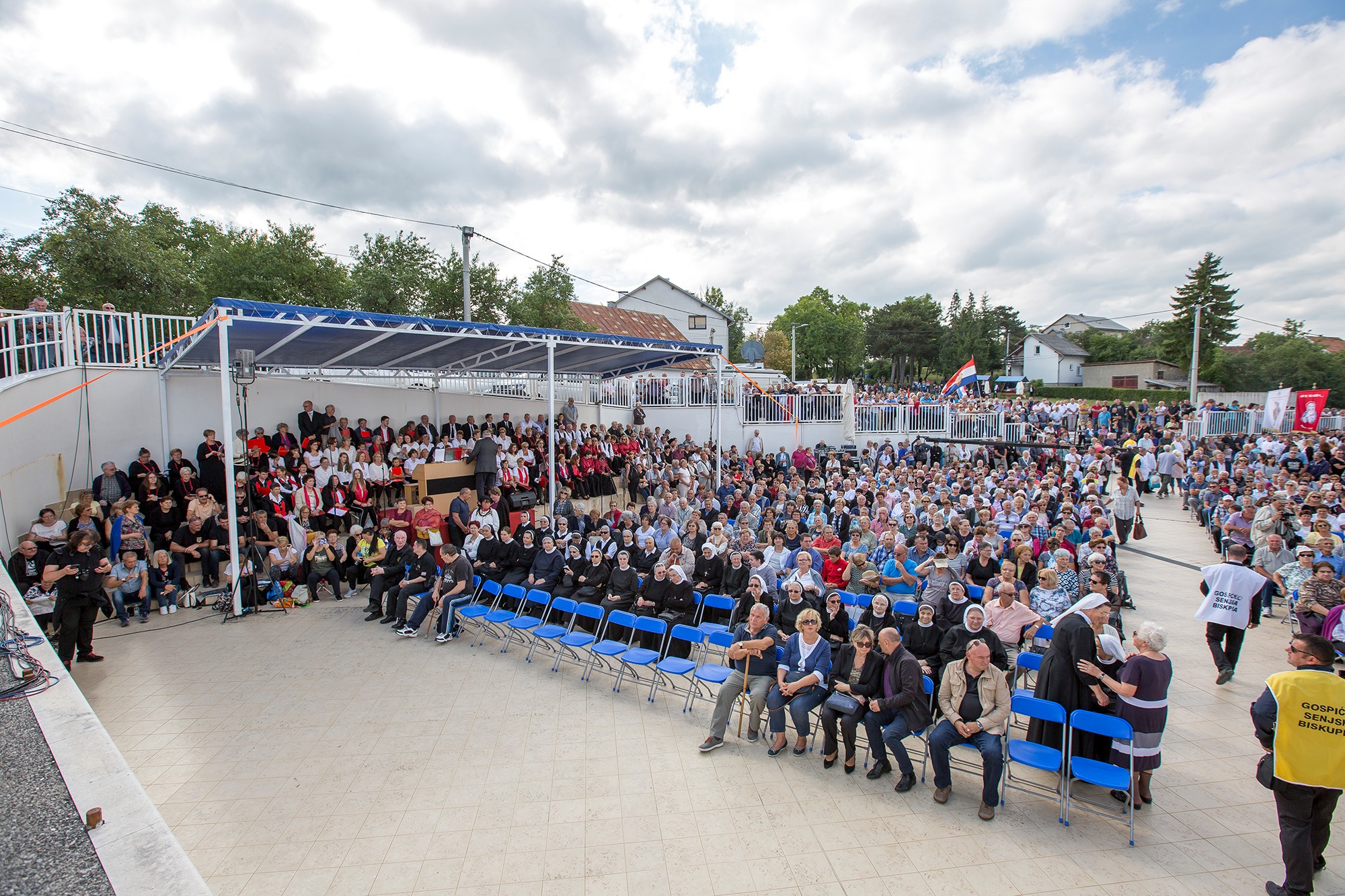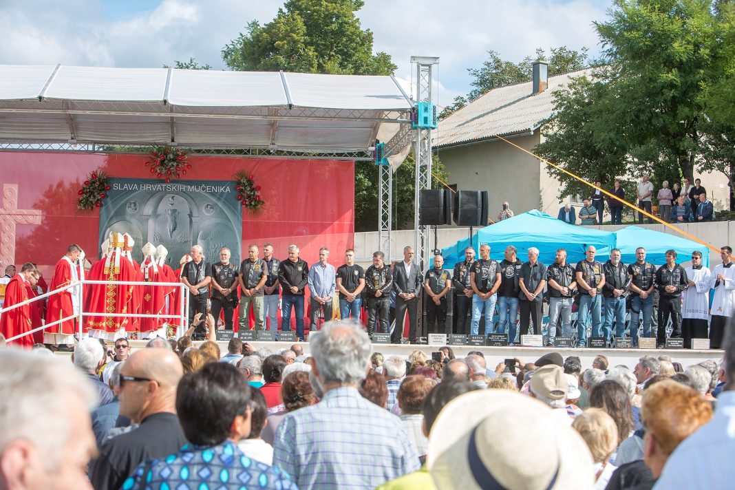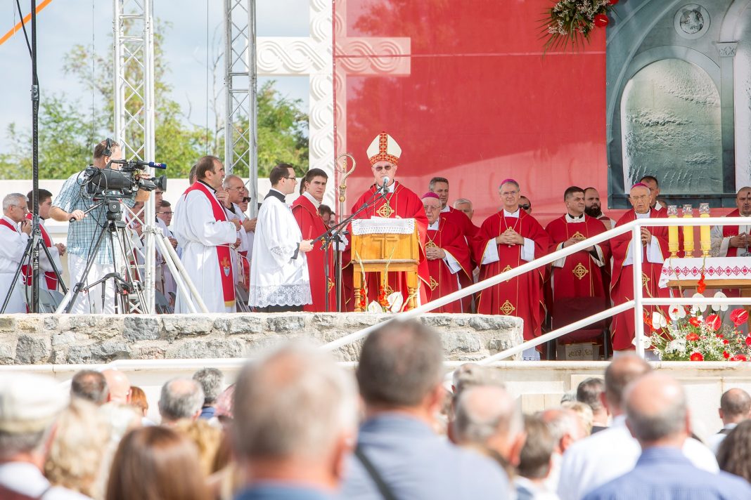 Oko oltara na podestu ispred Crkve hrvatskih mučenika okupio se više tisuća vjernika. Biskup gospićko-senjski mons. Zdenko Križić istaknuo kako se danas slavi i blagdan Uzvišenja svetog križa, simbolike koja čvrsto povezuje Boga, Isusa Krista i krćanstvo. Koncelebriranu svetu misu predvodio je hvarski biskup i tajnik HBK-a mons. Petar Palić. Tijekom propovijedi mons. Palić je kao metaforu više puta istaknuo zmijski ugriz koji od vremena Mojsija do danas truje ljudsko društvo.