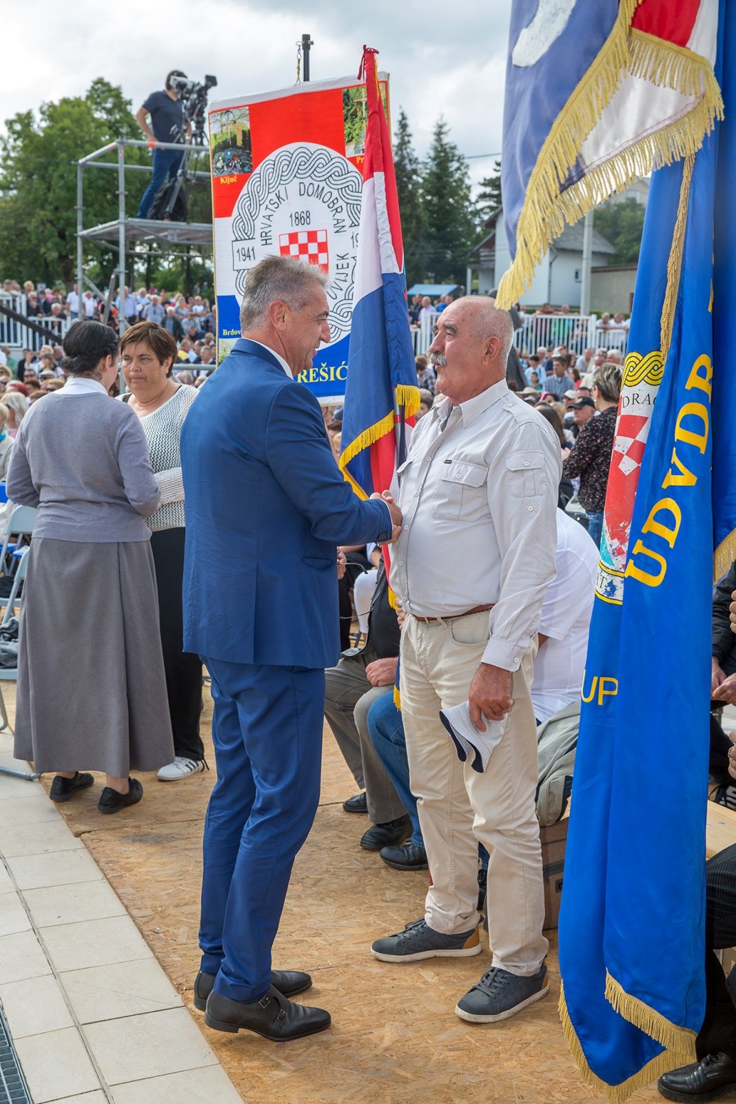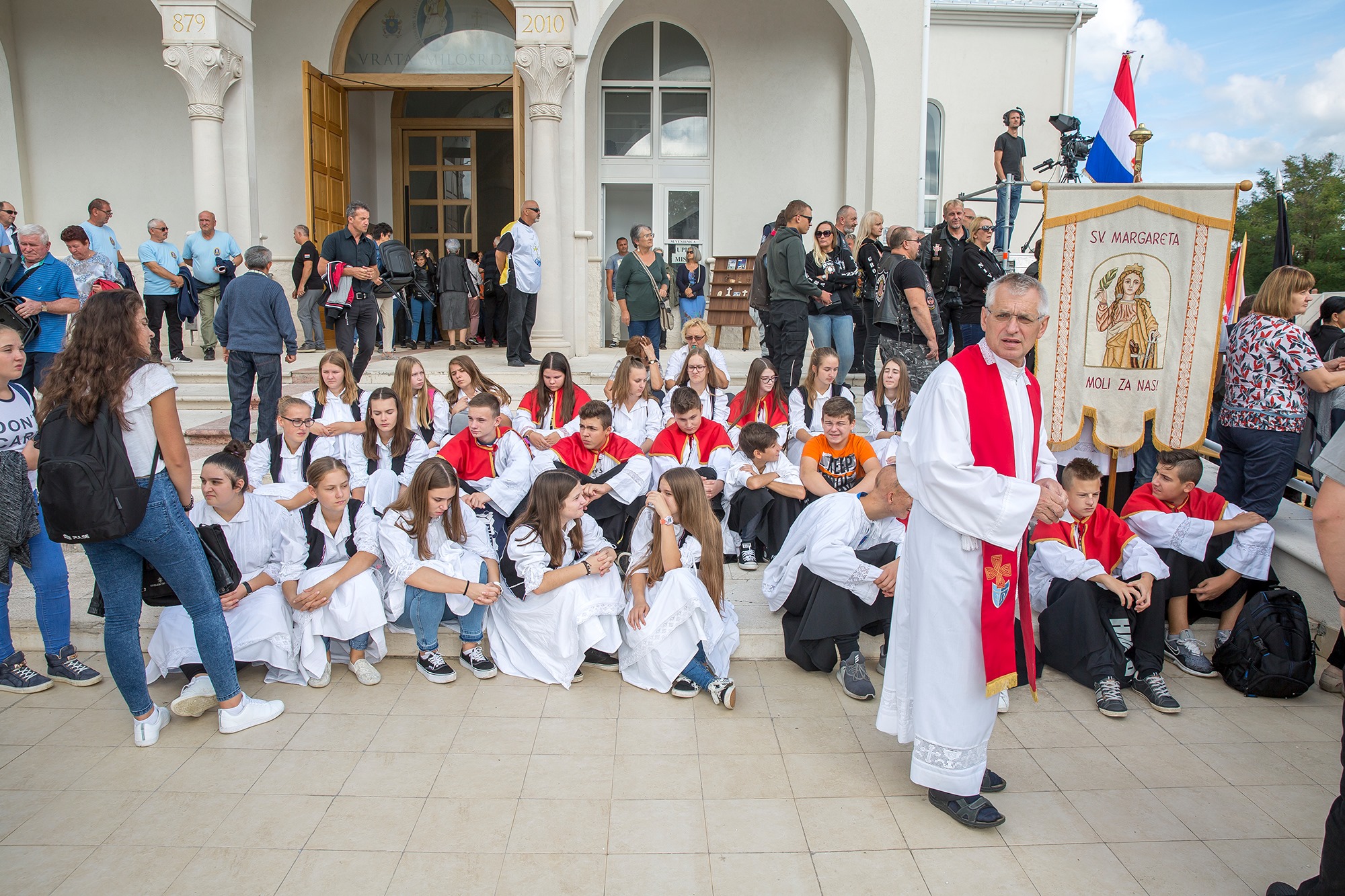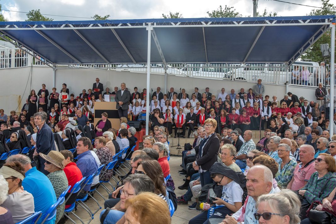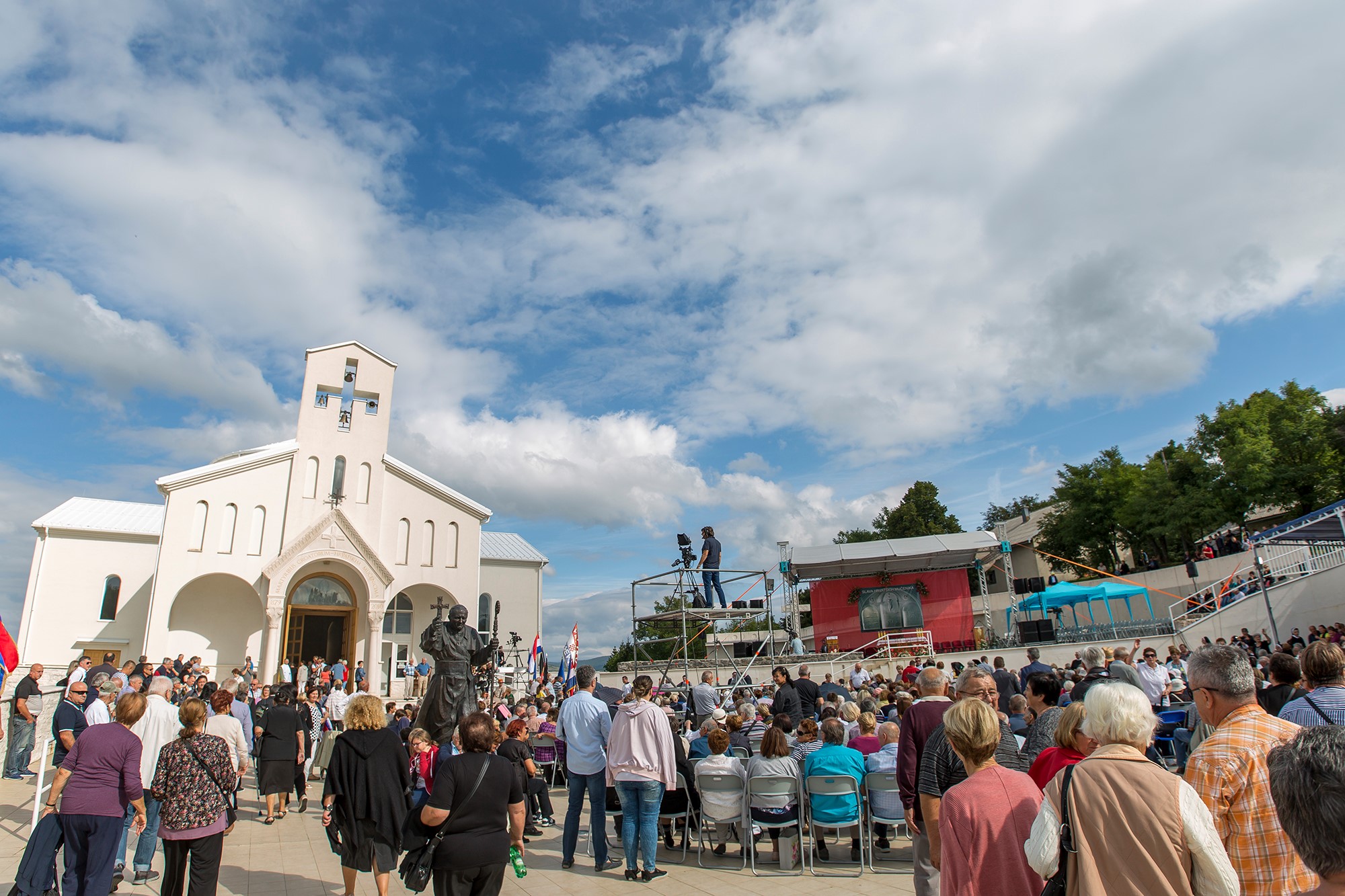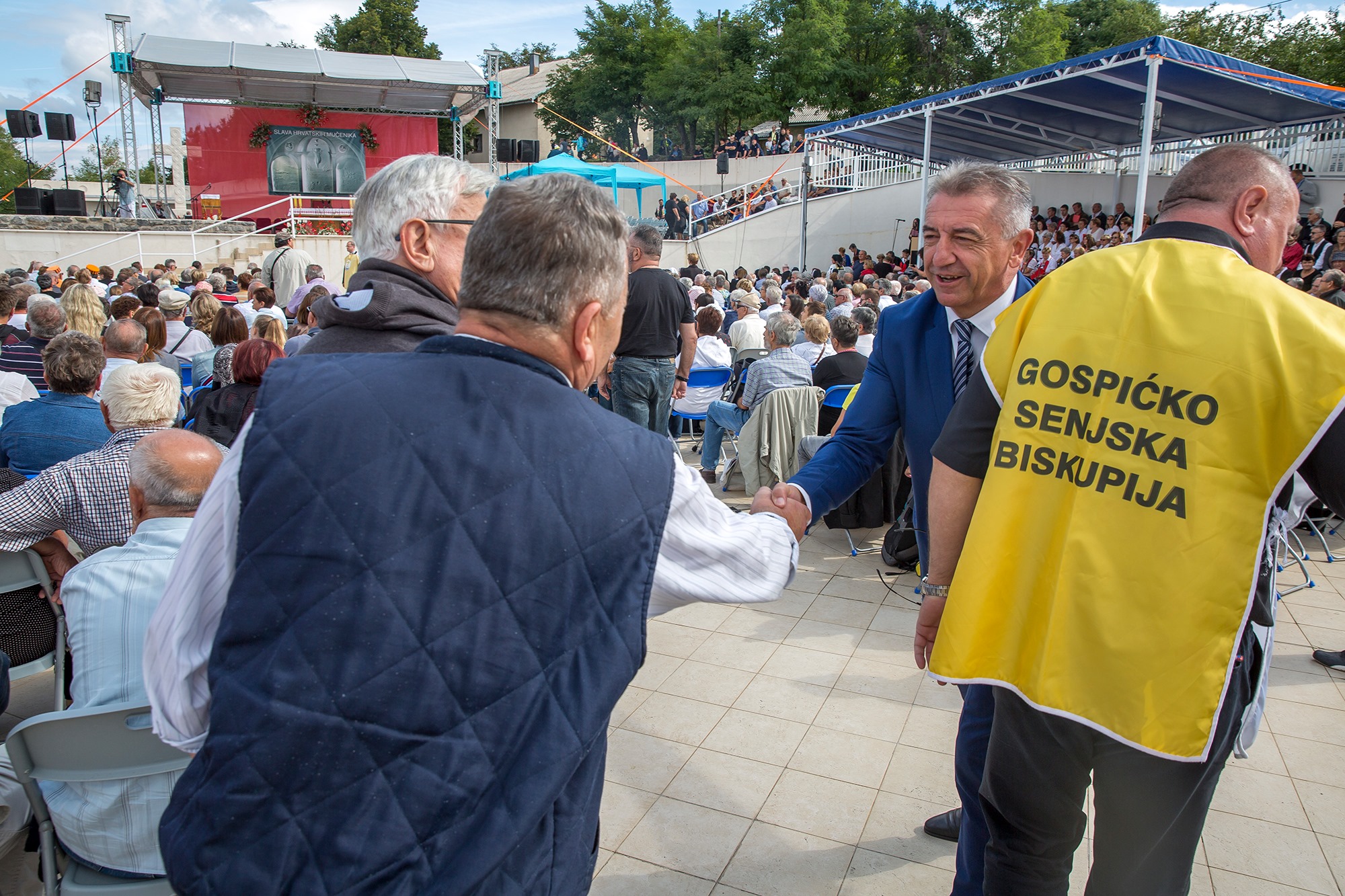 Oko oltara na podestu ispred Crkve hrvatskih mučenika okupio se više tisuća vjernika. Biskup gospićko-senjski mons. Zdenko Križić istaknuo kako se danas slavi i blagdan Uzvišenja svetog križa, simbolike koja čvrsto povezuje Boga, Isusa Krista i krćanstvo. Koncelebriranu svetu misu predvodio je hvarski biskup i tajnik HBK-a mons. Petar Palić. Tijekom propovijedi mons. Palić je kao metaforu više puta istaknuo zmijski ugriz koji od vremena Mojsija do danas truje ljudsko društvo.