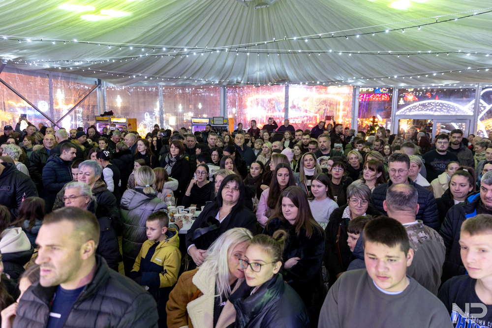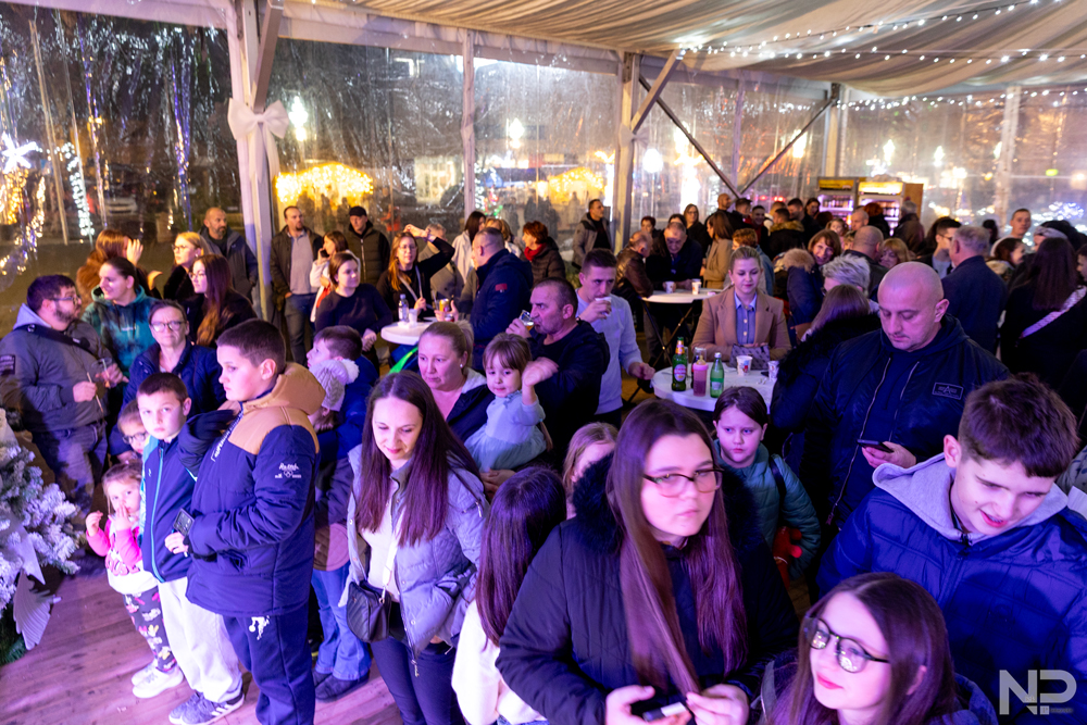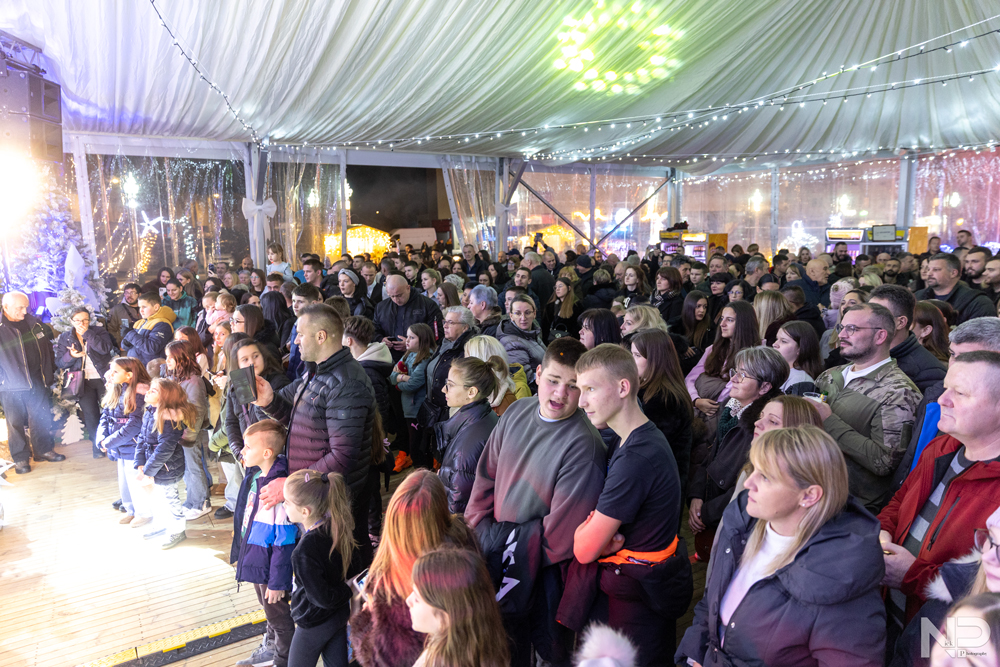 Posebnu atmosferu večeri dodatno su naglasili svjetlosni efekti, blagdanska dekoracija i vidljivo dobro raspoloženje okupljenih, među kojima su bili i mladi i obitelji s djecom, ali i stariji sugrađani.