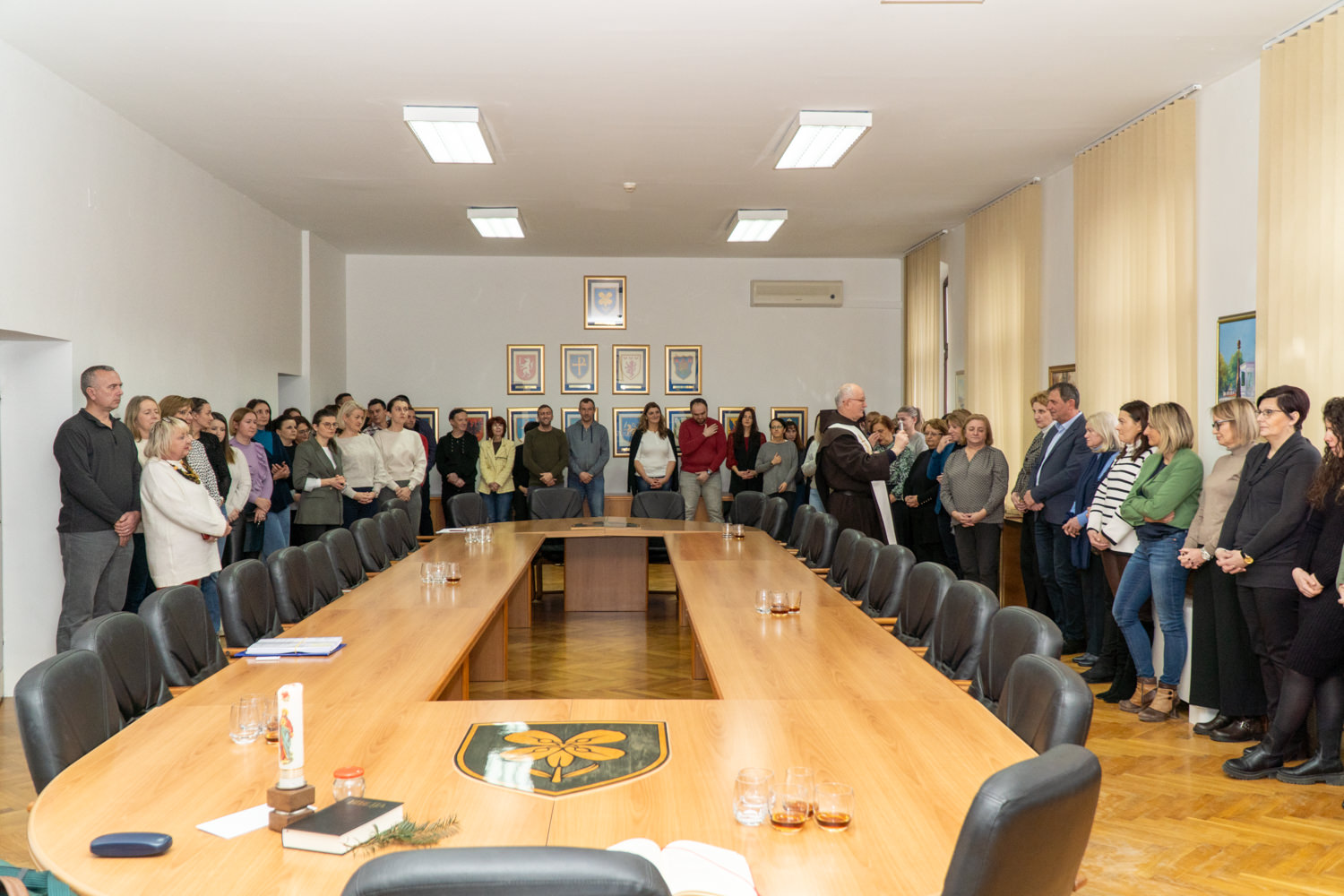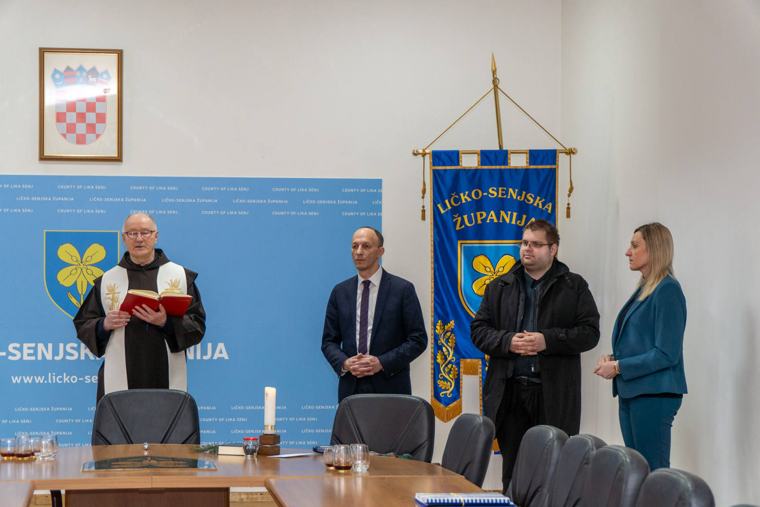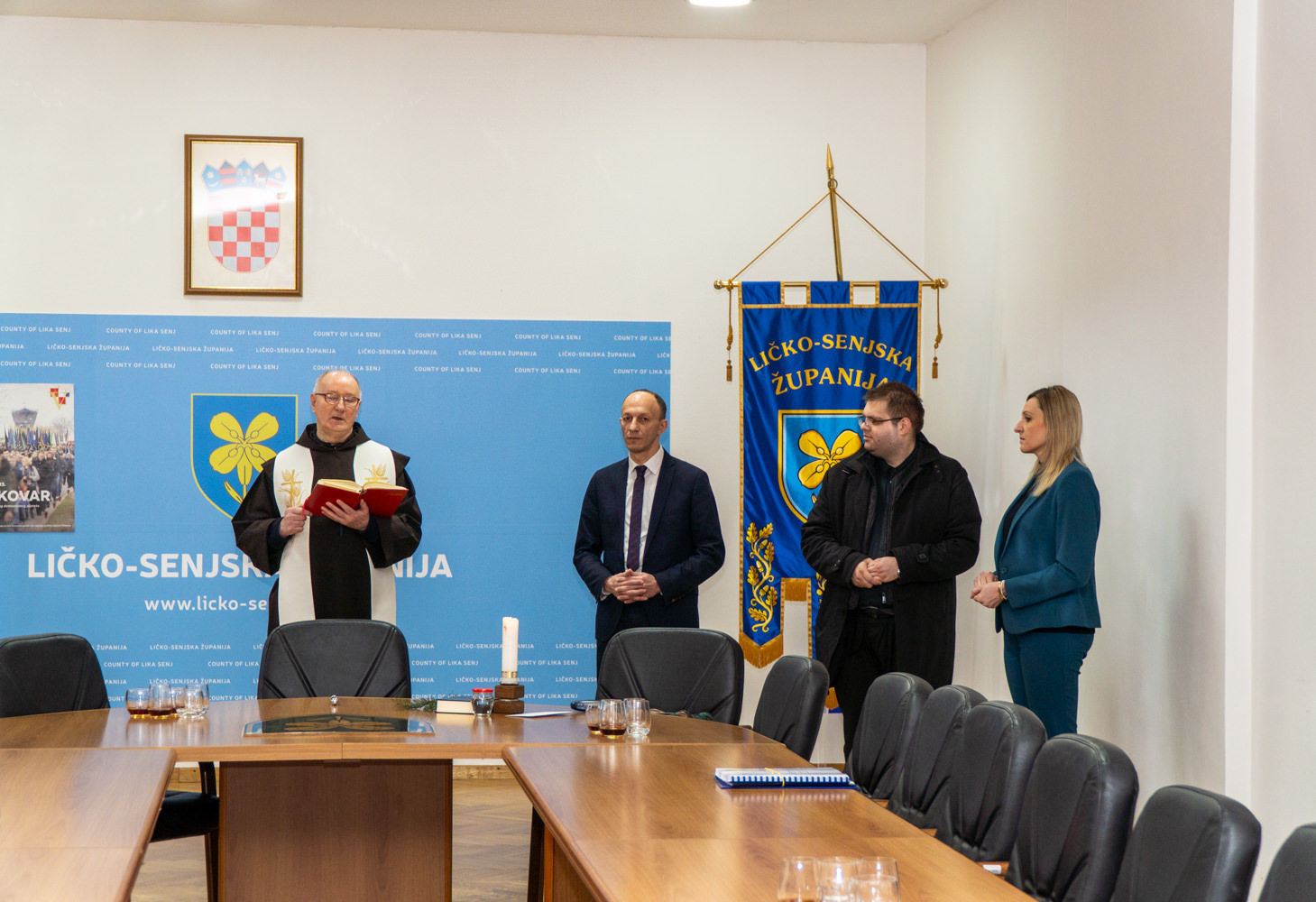 U skladu s kršćanskom tradicijom današnji dan obilježio je blagoslov koji je vlč. Anto Knežević, gospićki župnik, udijelio u Dvorani za sastanke Ličko-senjske županije. Uz prisustvo župana Ernesta Petryja i zamjenice Jasne Brkljačić Orešković riječi molitve i blagoslov primili su svi djelatnici županije.