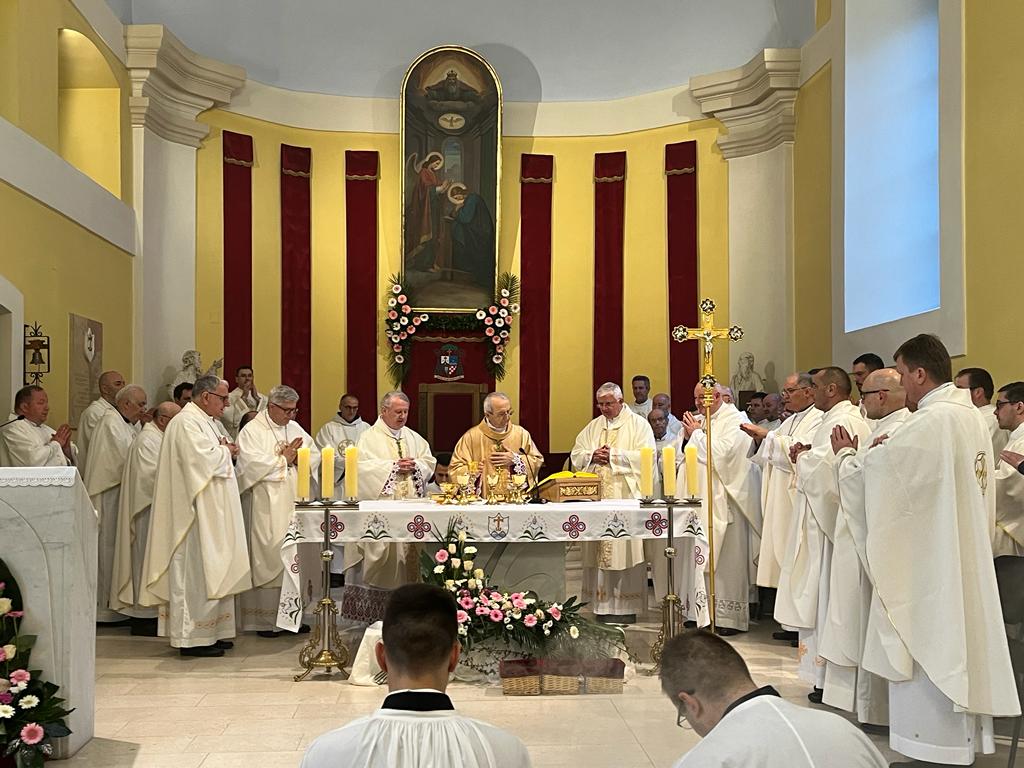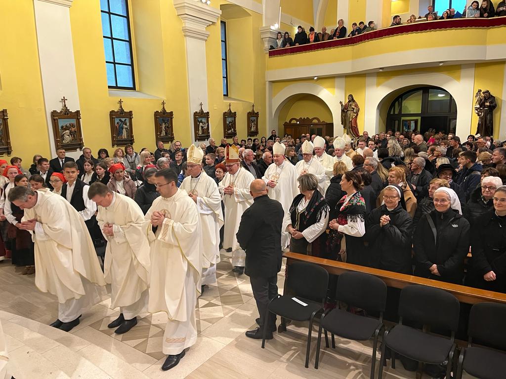 Srdačno pozdravljam i preč. Krunoslava Novaka, tajnika Hrvatske biskupske konferencije; generalnog vikara Riječke nadbiskupije, mons. Marija Tomljanovića; preč. Željka Faltaka rektora Bogoslovnog sjemeništa u Zagrebu, gdje borave i studiraju i bogoslovi naše biskupije. Pozdravljam kanonike Senjskog kaptola, sve svećenike, redovnike i redovnice bogoslove, ministrante, pjevački zbor i još jednom sve vas, dragi vjernici i hodočasnici iz drugih župa naše biskupije.
