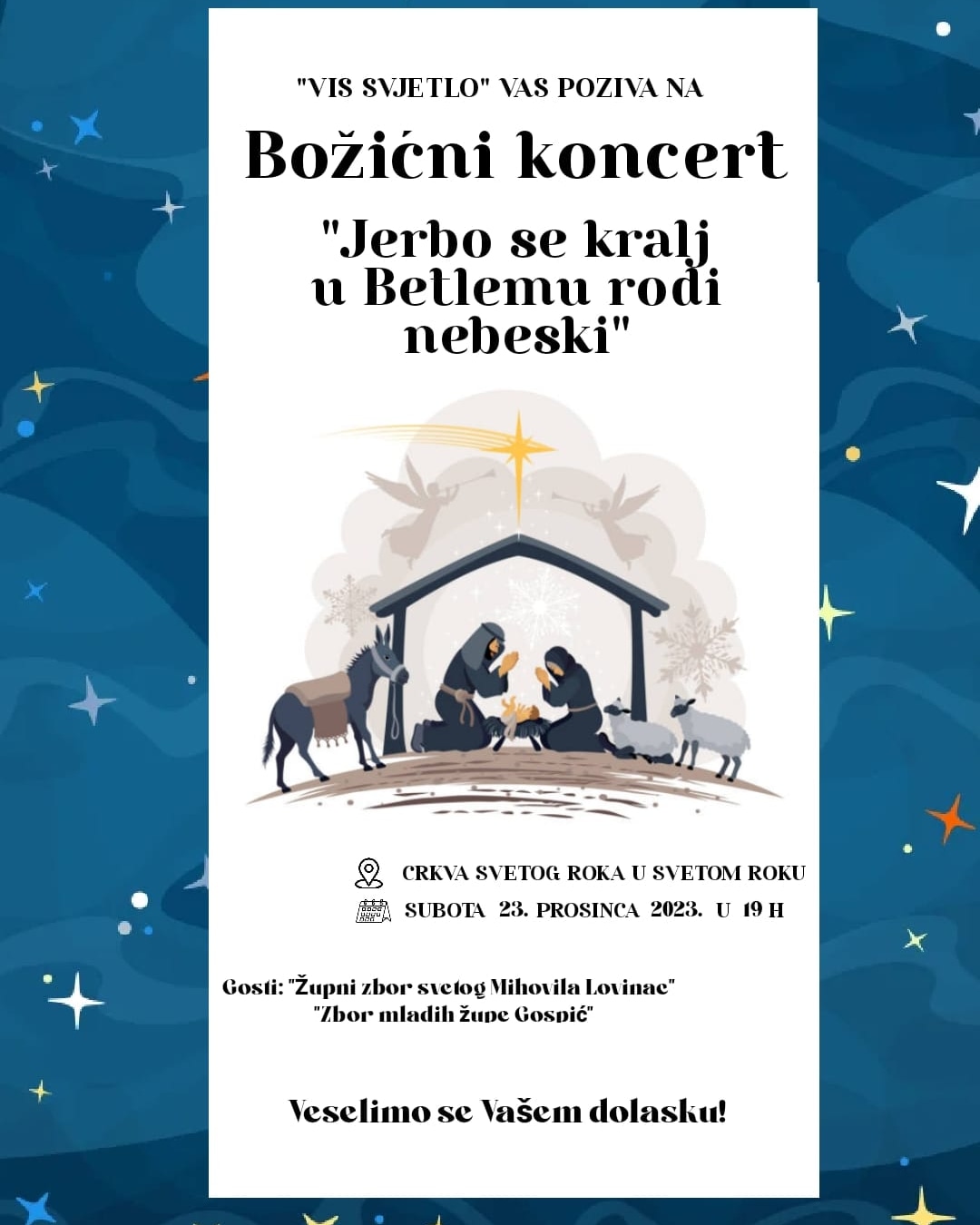 VIS SVJETLO” Vas poziva na Božićni koncert “Jerbo se kralj u Betlehemu rodi nebeski” koji će se održati u subotu 23.12. s početkom u 19.00h