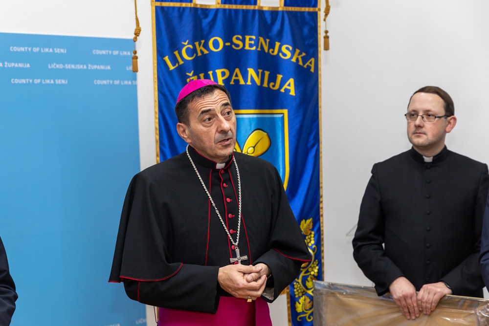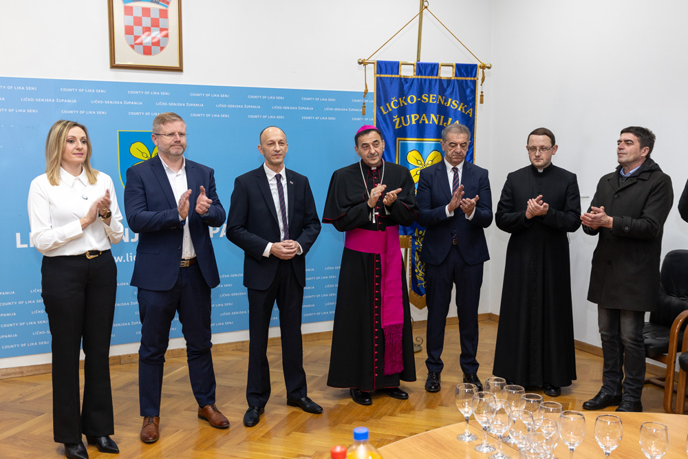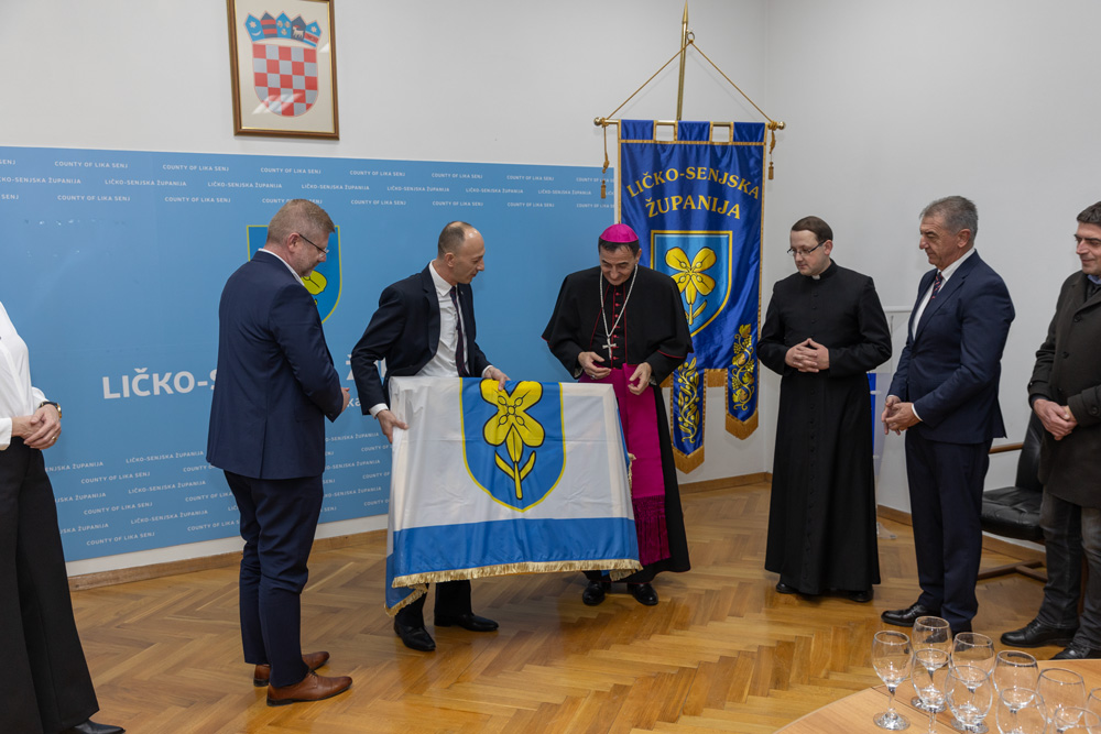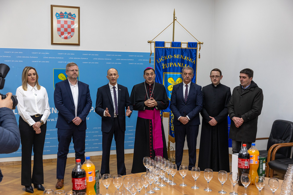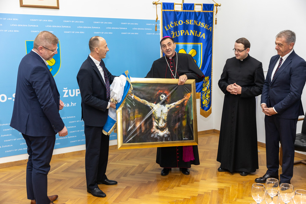 Na kraju prijema, župan Petry biskupu je uručio umjetničku fotografiju kao simboličan dar i sjećanje na prvi dolazak mons. Mede u zgradu Ličko-senjske županije.