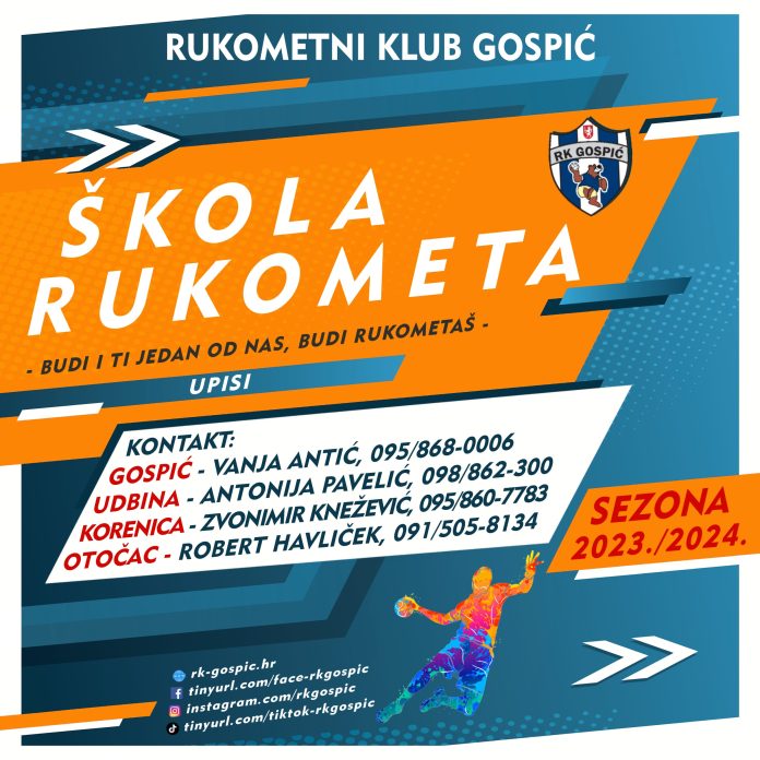 Sve grupe Rukometnog kluba „Gospić“ u Gospiću, Udbini, Korenici i Otočcu primaju nove članove.