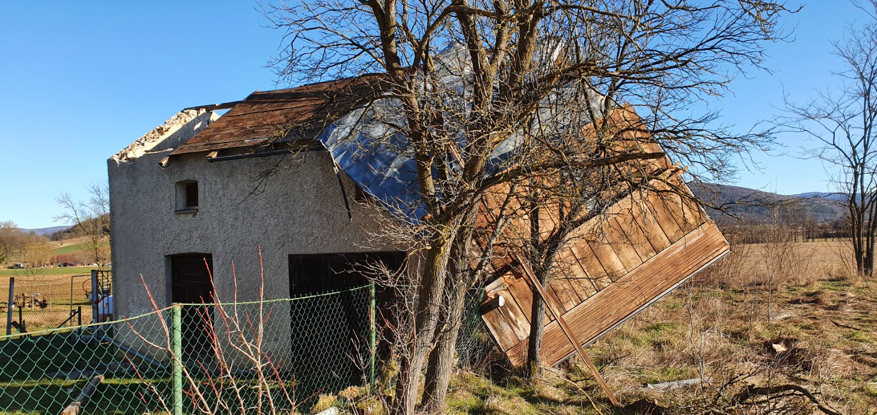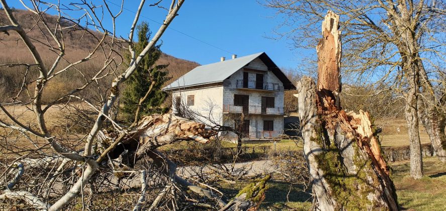 Ukoliko smo žalili što nema snijega, svakako nismo žalili za burom. Ona se noćas u orkanskim udarima „preselila“ s mora na kopno. Na udaru pomahnitala vjetra našla se cijela Lika. Fotografije stigle iz okolice Otočca dovoljno kazuju o snazi bure koja je rušila sve pred sobom. Limeni krov jedne gospodarske zgrade „ogulila“ je do kraja, a „ceh“ su platila i mnoga stabla, posebno starije voćke. Najteže je bilo u Prozoru i kod Špilnika, odakle su načinjene ove fotografije. Ako je vjerovati najavama meteorologa, koji nas u zadnje vrijeme često nehotice prevare, bura će tijekom dana malaksati.