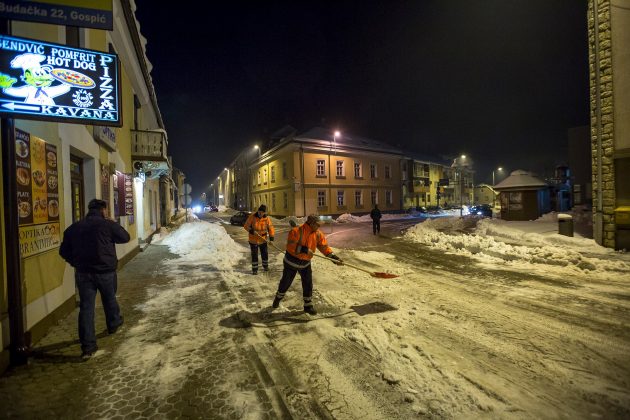 Pisali smo jučer kako se čini da Gospić ove godine nema Stožera zimske službe jer bi se inače još u nedjelju uklonio snijeg iz središta grada. Stigla su neka nesuvisla priopćenja i tekstovi iz pera gradonačelnikovih potrkala. I vidi vraga: večeras zimske službe rade upravo ono o čemu smo pisali. Vrijedni djelatnici Lika cesta očistili su i odvezli mnoštvo snijega sa gradskih ulica. Prognoza vremena najavljuje novi snijeg, pa je ova akcija bila nužna. Izgleda da je gradonačelnik napokon počeo shvaćati snagu lokalnih medija pa nas je ponovno poslušao.