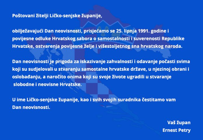 U ime Ličko-senjske županije, kao i svih svojih suradnika čestitamo vam