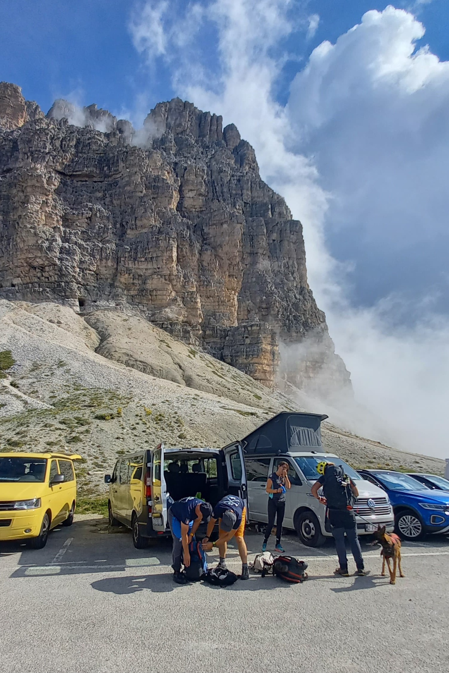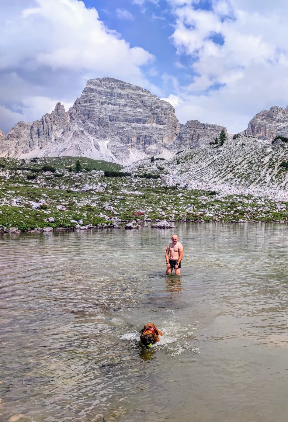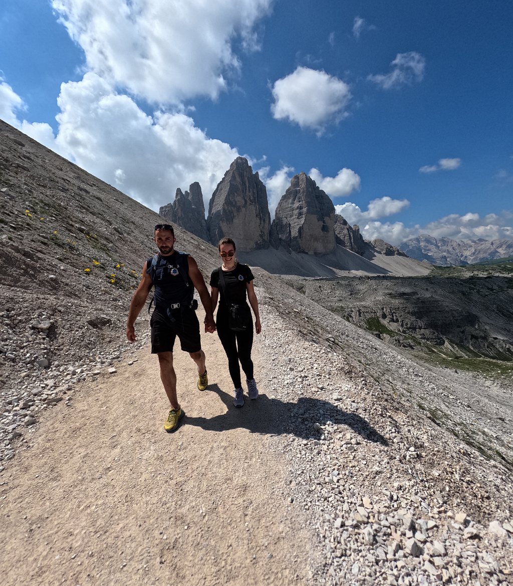 Druga skupina članova (Stipe Piršljin, Mirela Kostelac Piršljin, Kristijan Bosanac i Viktorija Neralić) odlučila je dan provesti u trekingu na jednoj od najljepših dolomitskih staza koja kruži oko Tre Cime. Ova ruta pruža spektakularne poglede i predstavlja pravi raj za planinare i ljubitelje prirode, te je zasigurno ostavila nezaboravne uspomene na sve sudionike. Stipe je iskoristio priliku za pravo hrabro rashlađenje u obližnjem glečerskom hladnom jezercu čiste kristalne vode od 4°c, a uz njega je bio njegov i Mirelin pas belgijski ovčar Aron koji je također uz ekipu savladao visine do 2600 m.