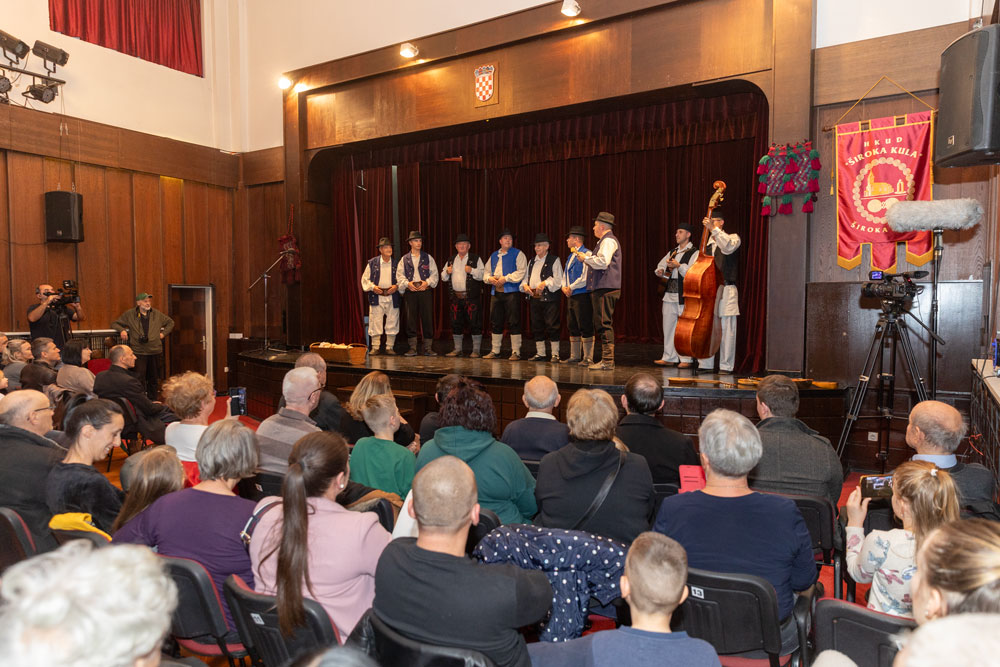 U prepunoj dvorani Veleučilišta podršku radu ove folklorne skupine dali su večeras mnogi, među njima ličko-senjski župan Ernest Petry, zamjenica gradonačelnika Kristina Prša, brojni ravnatelji Ustanova i poduzeća, predstavnici Crkve, kao i brojni štovatelji folklora. Članovi HKUD-a Široka Kula izveli su scenski prikaz ličkog prela, starinskog običaja u kojem se moglo čuti mnogo pjesme i glazbe, uz mnoštvo desetki kakve su davno dominirale na ovakvim okupljanjima.