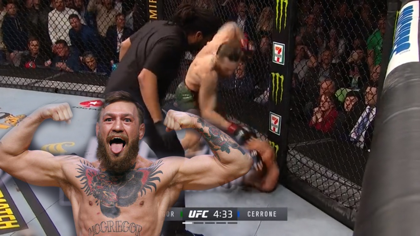 Spektakularan povratak Conora McGregora nakon 15 mjeseci izbivanja iz oktogona! Samo 40 sekundi trajao je Cerrone, UFC-ov rekorder po broju pobjeda i po broju završenih borbi u organizaciji.