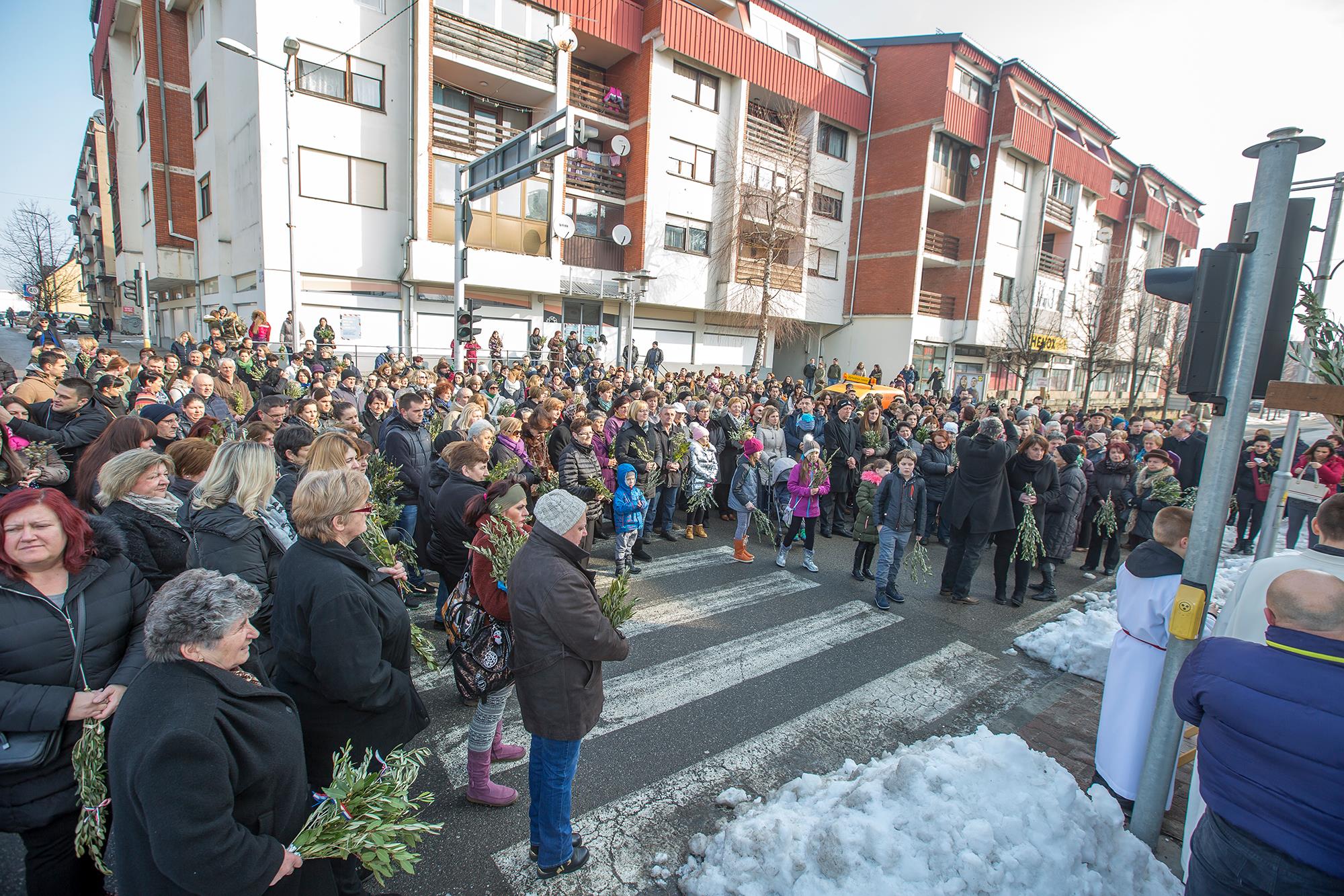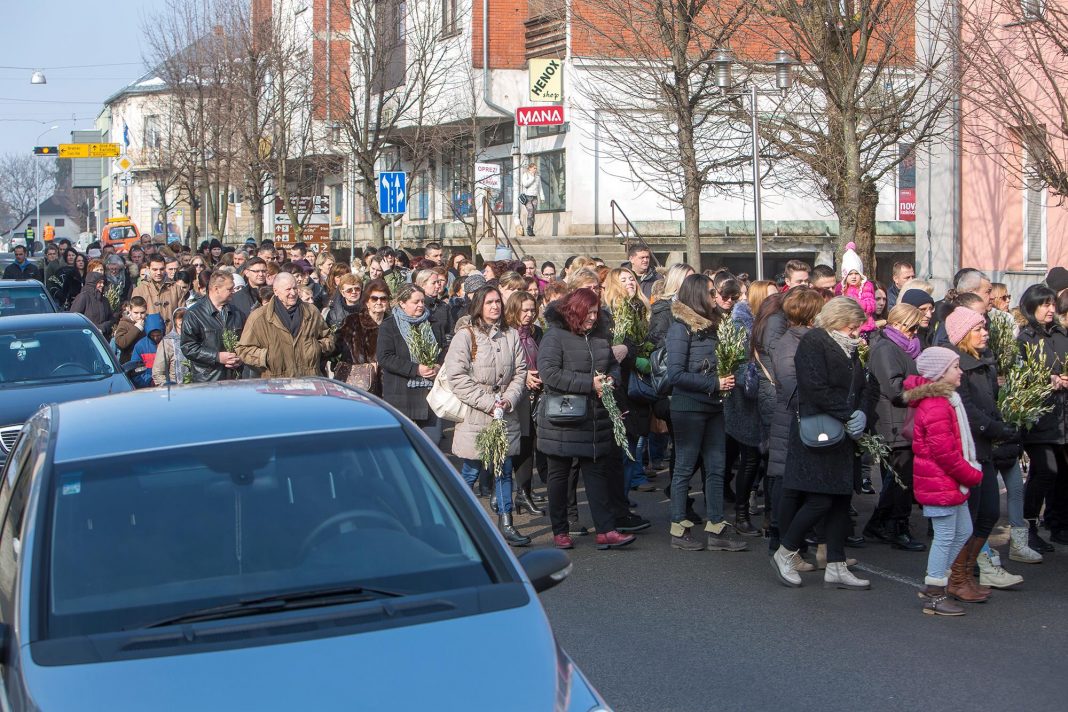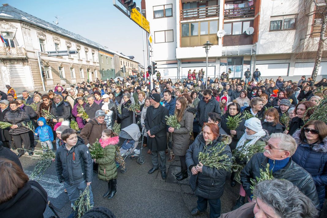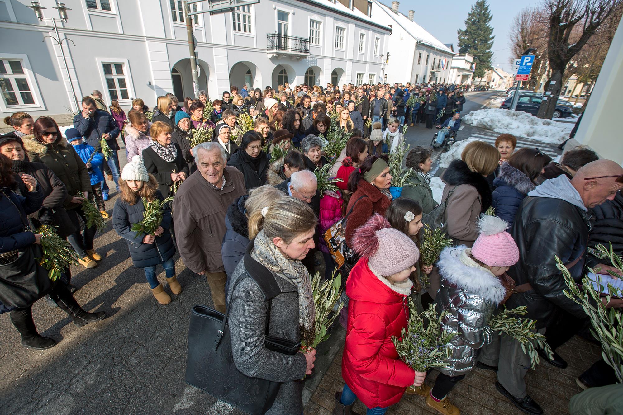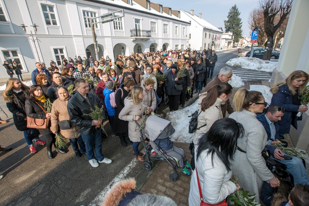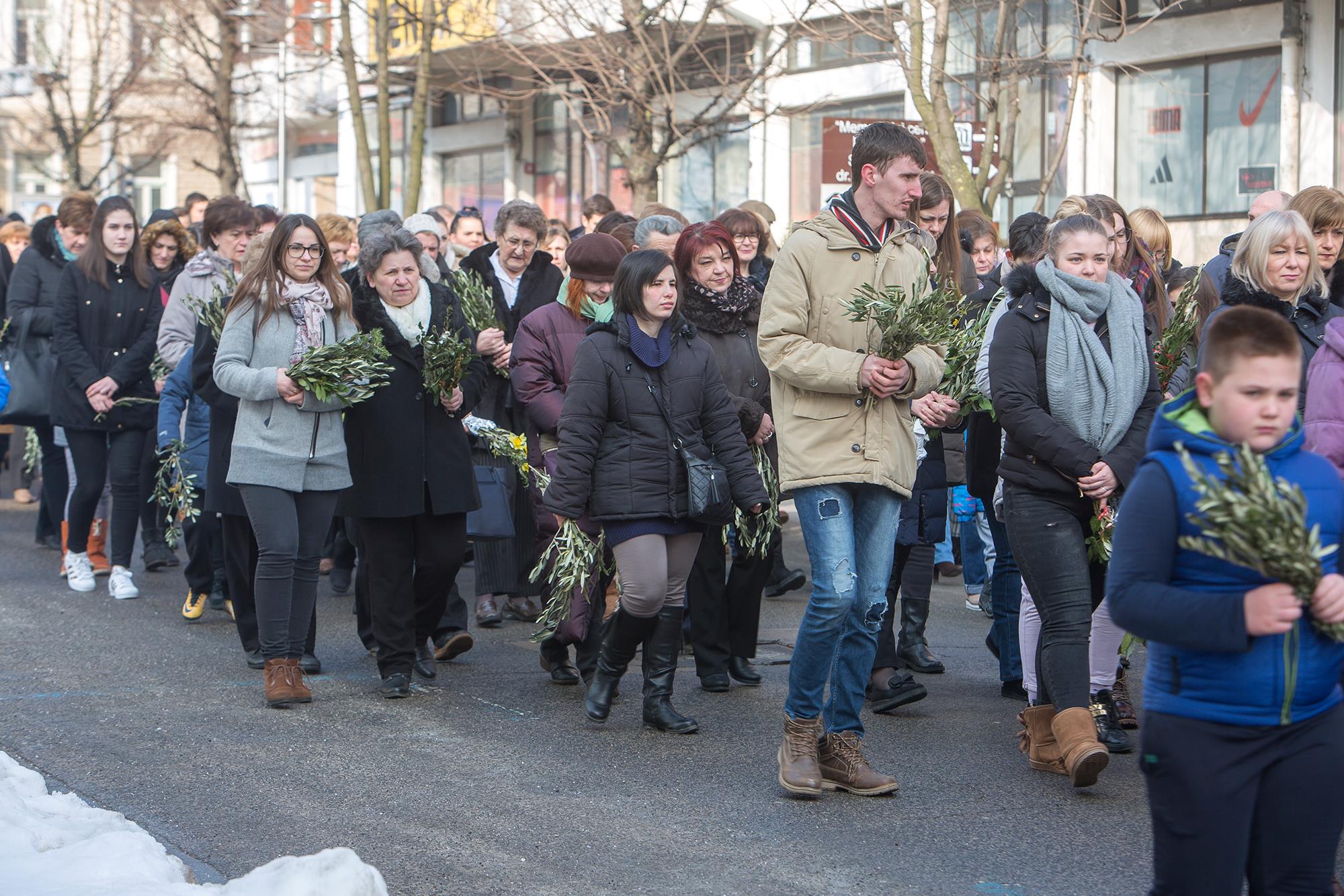 Niti prohladno jutro, niti pomjeranje satova nisu jutros omeli mnoštvo vjernika koji su željeli promicati tradiciju obilježavanja Cvjetne nedjelje ili Cvjetnice u Gospiću. Okupljeni ispred kapelice Svetog Ivana Nepomuka pjevali su crkvene pjesme, blagosivljale su se maslinove grančice i kazivali molitve. Na čelu formirane procesija nošen je križ, simbol kršćanstva i Isusove muke, s čime je započeto obilježavanje Velikog tjedna. Odmah iza križa išao je biskup gospićko-senjski mons. mr. Zdenko Križić koji je potom u katedrali Navještenja blažene djevice Marije predvodio koncelebriranu svetu misu. I ove Cvjetne nedjelje gospićka je katedrala bila pretijesna da bi primila sve vjernike koji su željeli svjedočiti ovome činu.