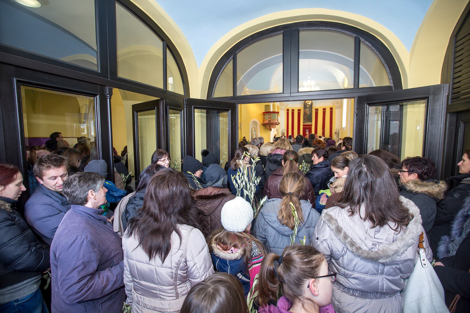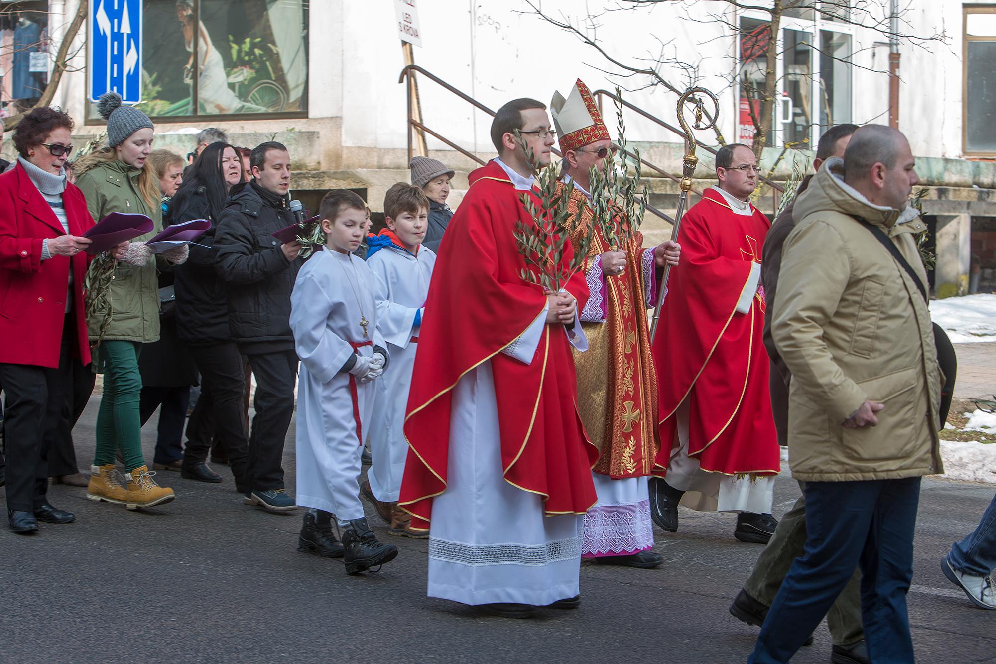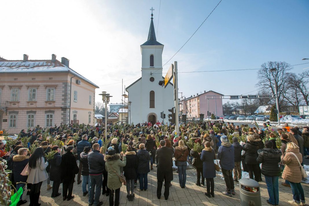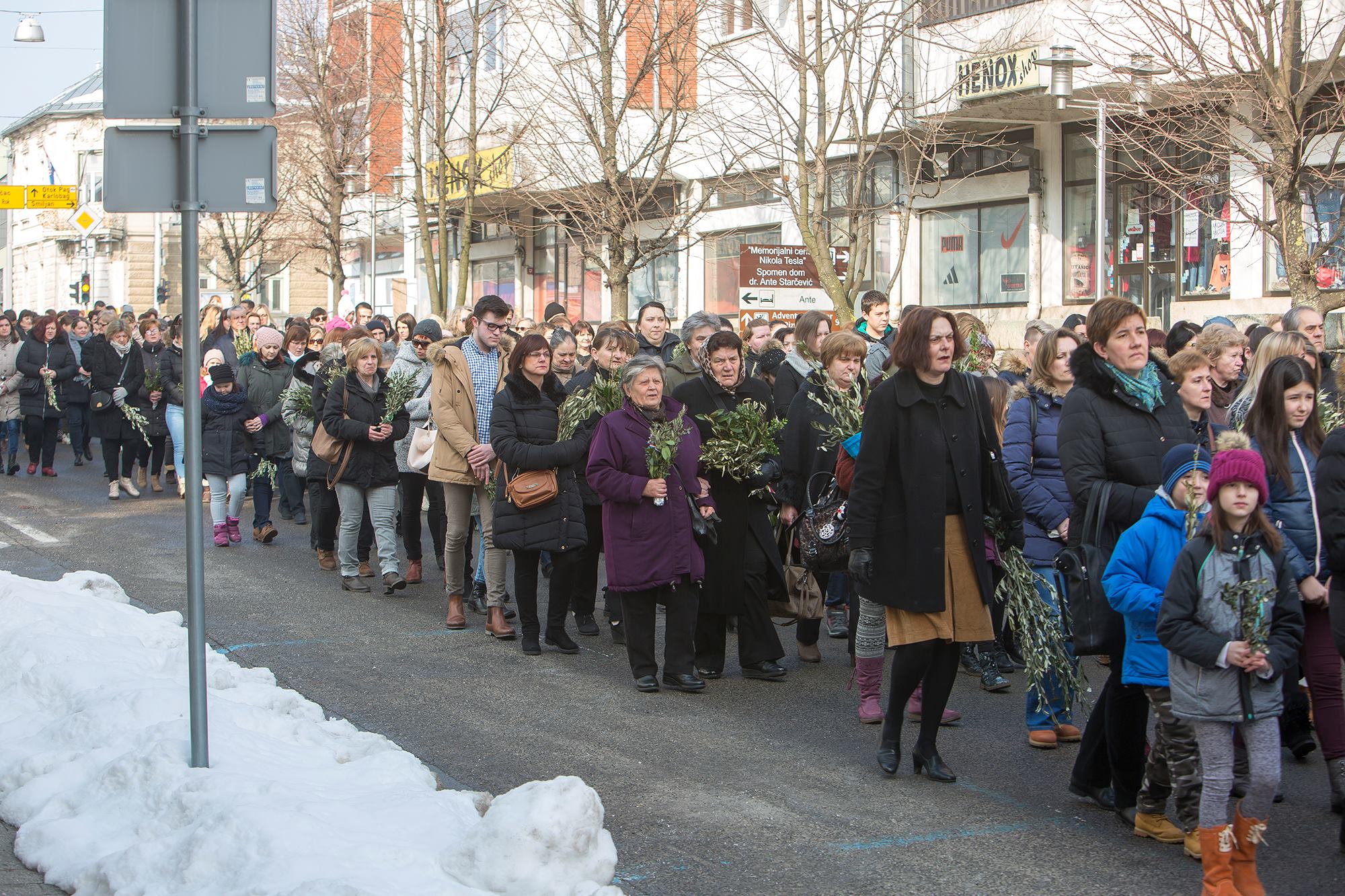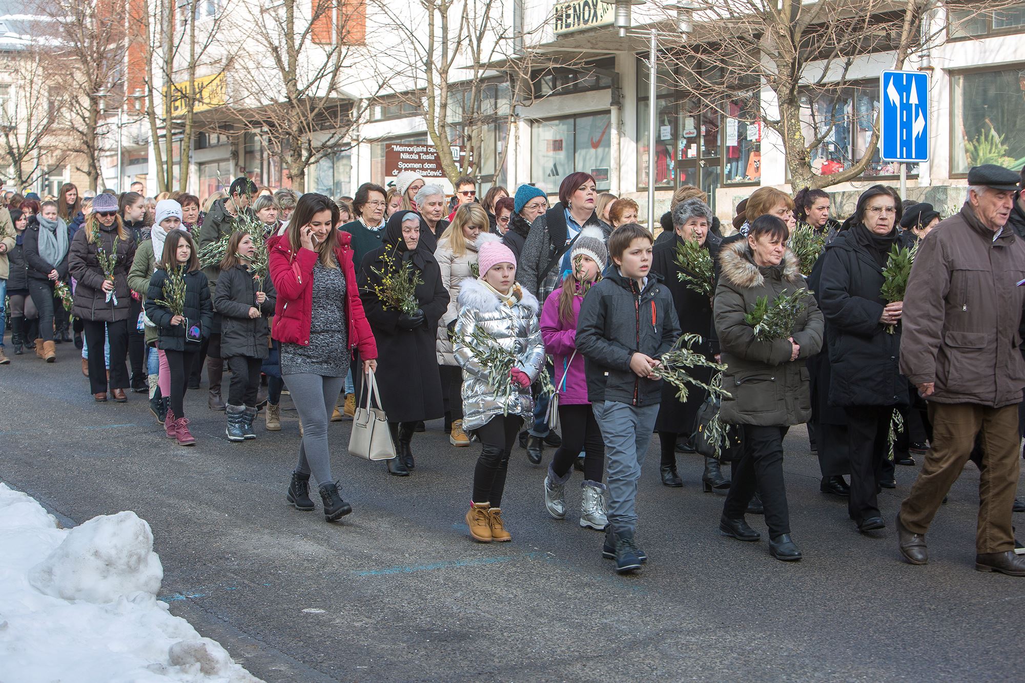 Niti prohladno jutro, niti pomjeranje satova nisu jutros omeli mnoštvo vjernika koji su željeli promicati tradiciju obilježavanja Cvjetne nedjelje ili Cvjetnice u Gospiću. Okupljeni ispred kapelice Svetog Ivana Nepomuka pjevali su crkvene pjesme, blagosivljale su se maslinove grančice i kazivali molitve. Na čelu formirane procesija nošen je križ, simbol kršćanstva i Isusove muke, s čime je započeto obilježavanje Velikog tjedna. Odmah iza križa išao je biskup gospićko-senjski mons. mr. Zdenko Križić koji je potom u katedrali Navještenja blažene djevice Marije predvodio koncelebriranu svetu misu. I ove Cvjetne nedjelje gospićka je katedrala bila pretijesna da bi primila sve vjernike koji su željeli svjedočiti ovome činu.
