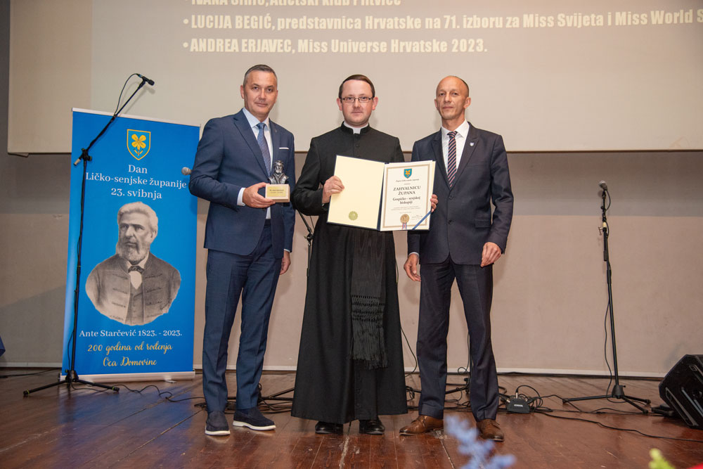U kinu Korzo u Gospiću nastavio se program obilježavanja Dana Ličko-senjske županije. Svečanoj sjednici Županijske skupštine uz domaćine, predsjednika Županijske skupštine Marijana Kustića i župana Ernesta Petryja, nazočio je i premijer Andrej Plenković. Okupljene je najprije pozdravio predsjednik Županijske skupštine Marijan Kustić. Istaknuo je kako svi skupa bez obzira na politički predznak trebaju nastaviti raditi na ostanku i povratku ljudi u ovu županiju. Kustić se je zahvalio županu Petryju na svemu onome što radi za boljitak stanovnika Ličko-senjske županije. Kazao je i kako županija za sve bitne teme vezane ima sugovornike u Vladi RH, od ministara pa sve do premijera. Župan Ernest Petry i predsjednik Županijske skupštine Marijan Kustić dodijelili su zahvalnice i priznanja zaslužnim građanima i organizacijama. Među ostalima zahvalnicu je dobila i Gospićko-senjska biskupija za organiziranje 12. Susreta hrvatske katoličke mladeži koji se održao 4. svibnja u gradu Gospiću. Zahvalnicu su dodijelili Ernest Petry i Marijan Kustić a u ime Biskupije primio ju je kancelar Mišel Grgurić.