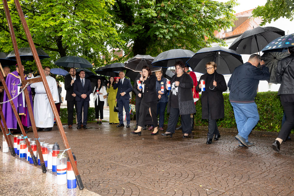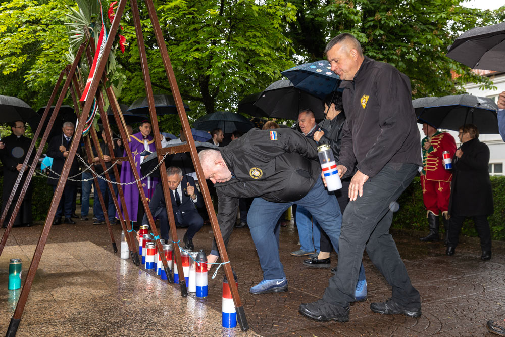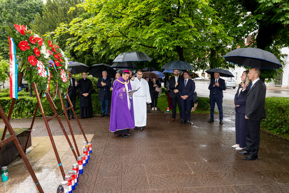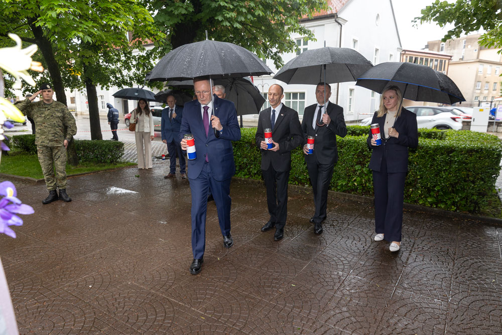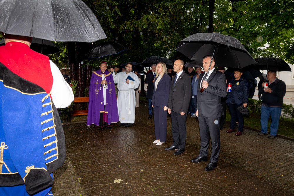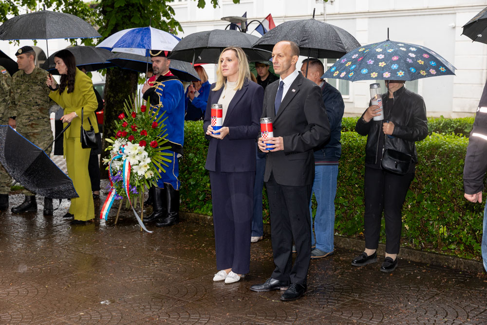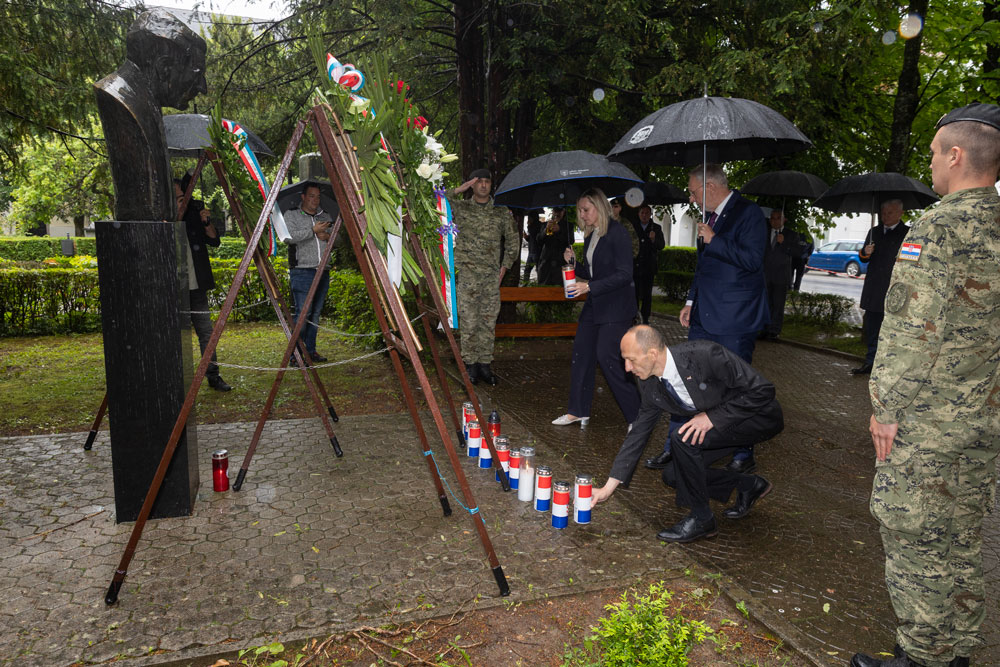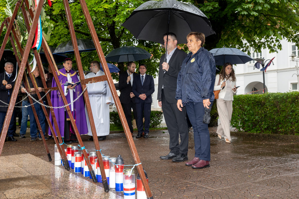 Nakon mise, upriličeno je zajedničko polaganje vijenaca i paljenje svijeća kod Spomenika poginulim braniteljima i civilnim žrtvama Domovinskog rata te biste prvog hrvatskog predsjednika dr. Franje Tuđmana na Trgu Alojzija Stepinca u Gospiću. Vijence i svijeće položili su ministar unutarnjih poslova i izaslanik Vlade RH Davor Božinović, državni tajnik Ministarstva hrvatskih branitelja Darko Nekić kao izaslanik ministra Tome Medveda, državni tajnik Ministarstva obrane Branko Hrg kao izaslanik ministra Ivana Anušića, župan ličko-senjski Ernest Petry i zamjenica župana Jasna Orešković Brkljačić, zamjenik gradonačelnika Grada Gospića Ivica Kovačević sa suradnicima, kao i predstavnici vojske, policije i braniteljskih udruga te pročelnici županijski odjela i ostali.
