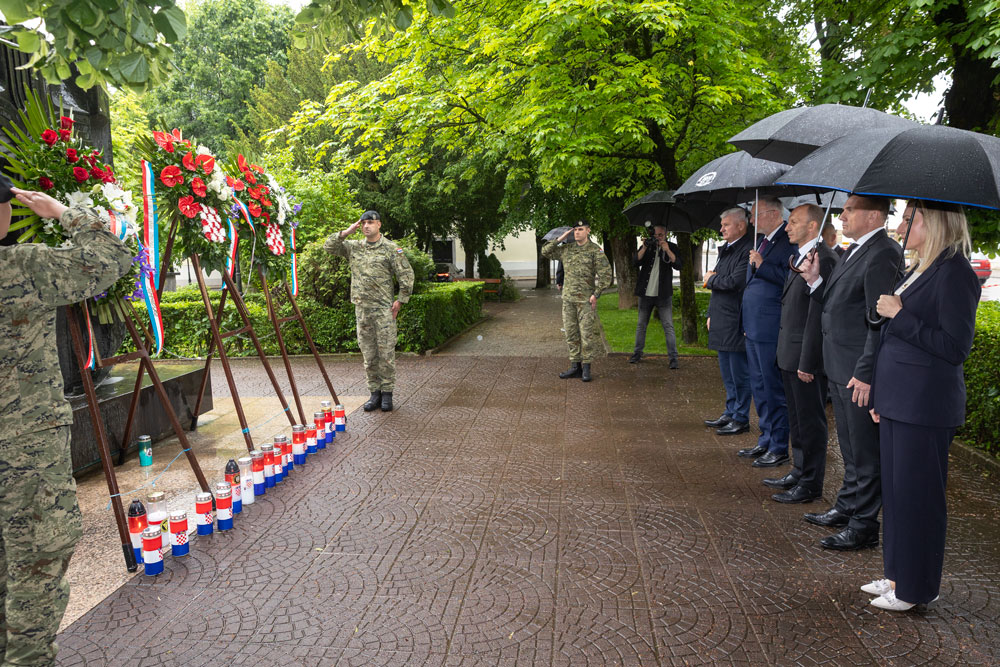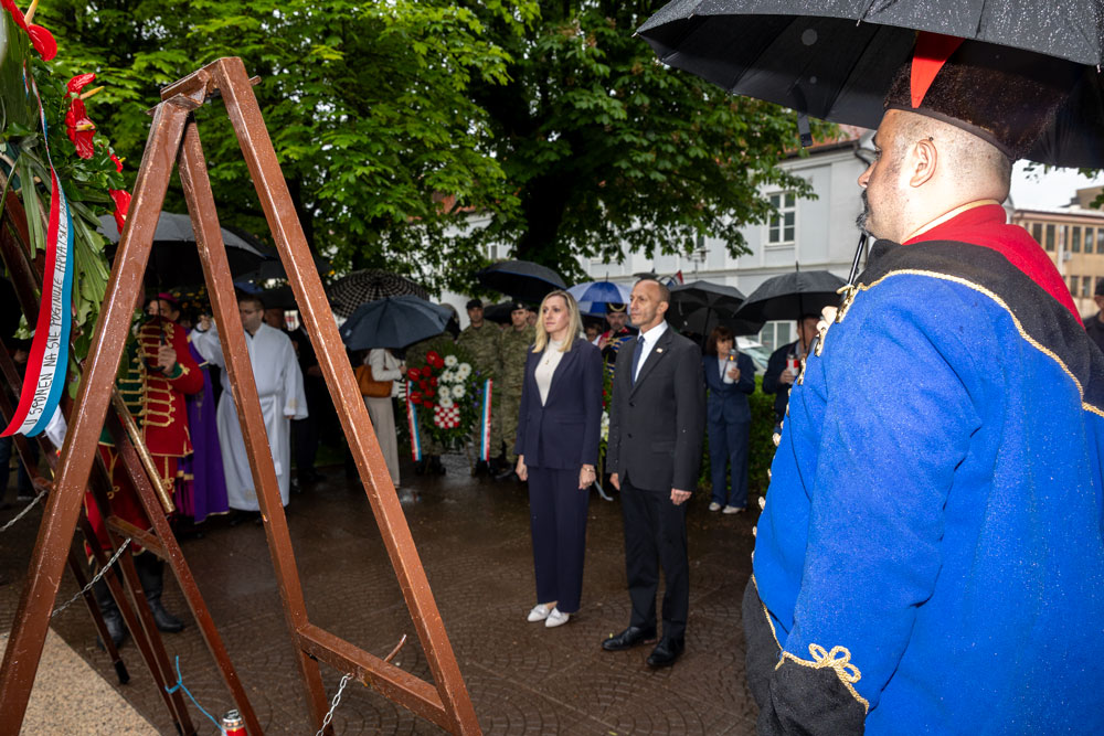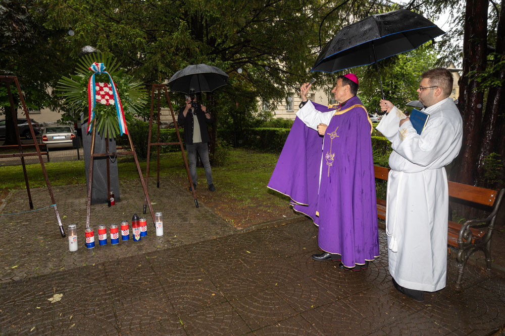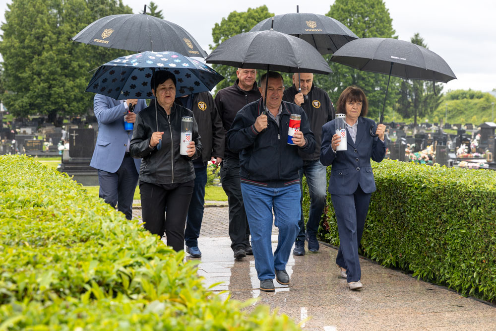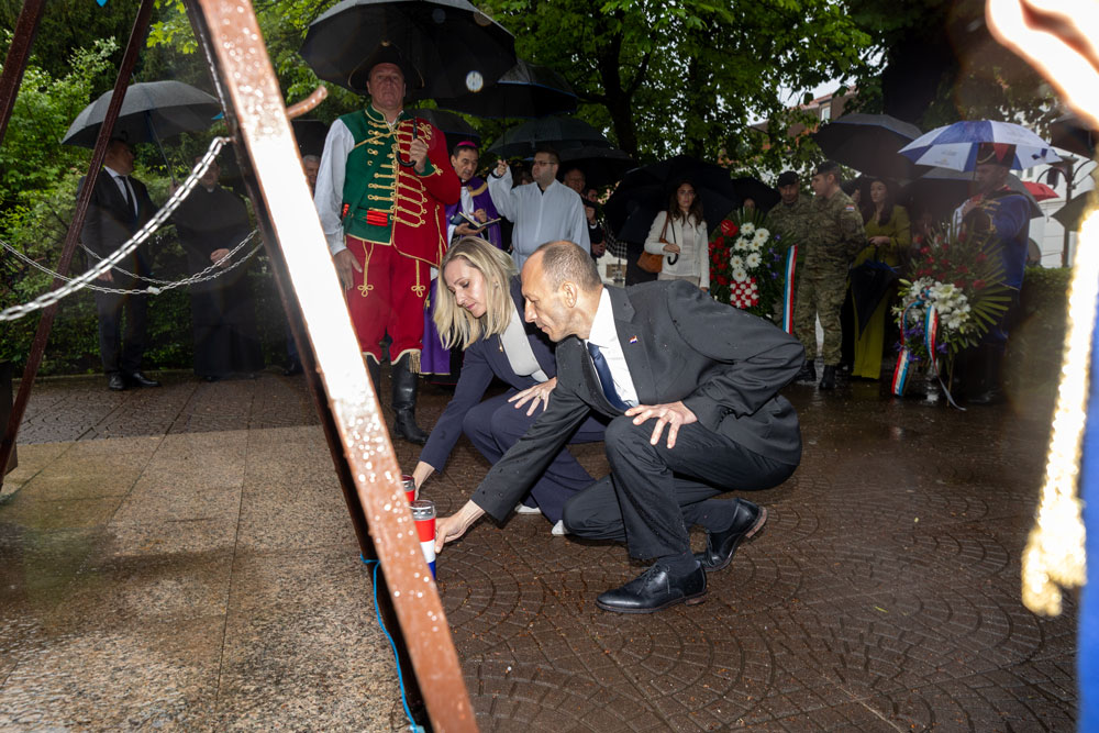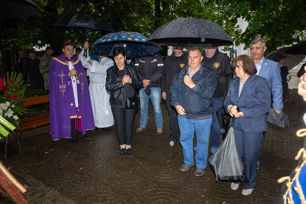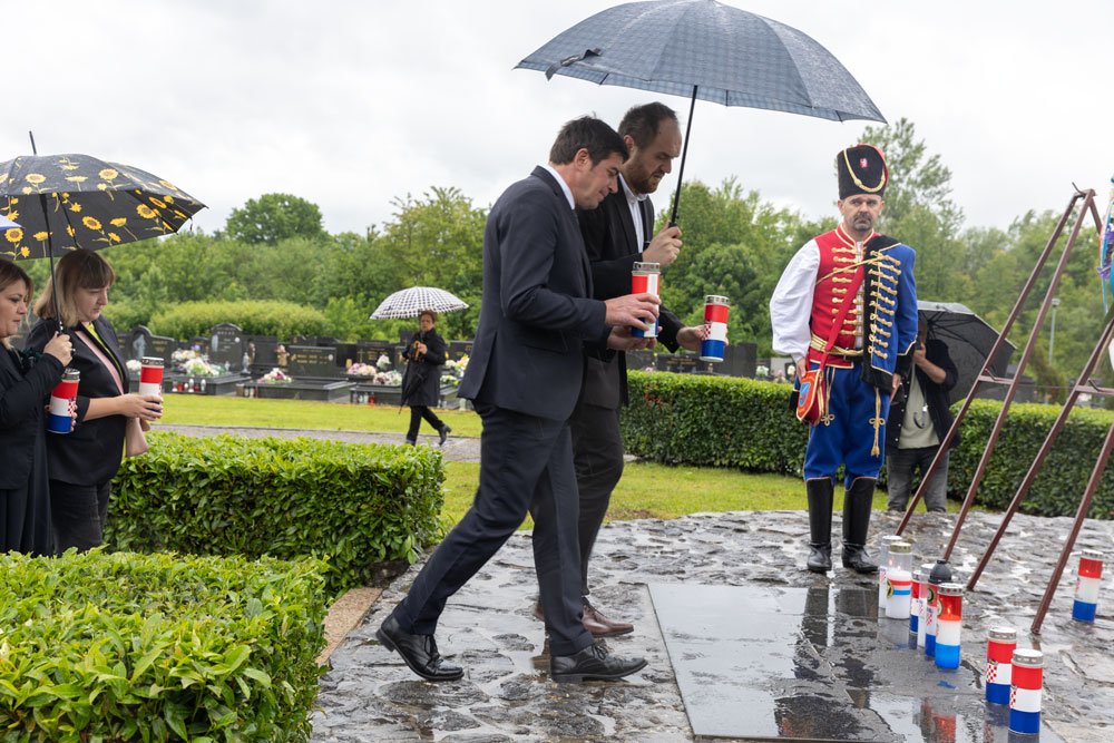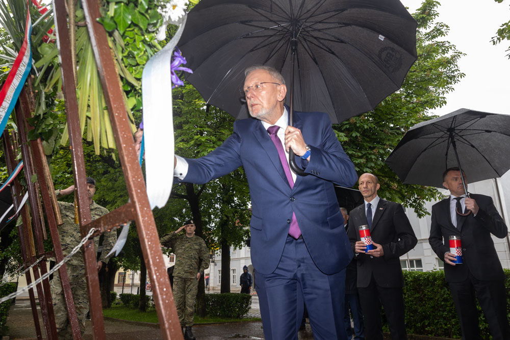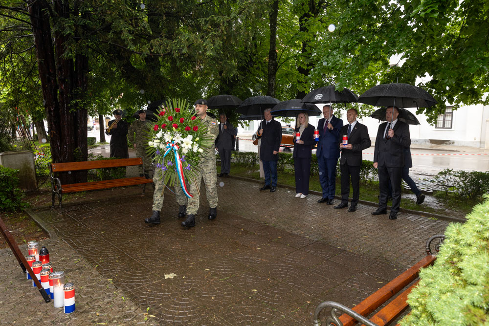 Nakon mise, upriličeno je zajedničko polaganje vijenaca i paljenje svijeća kod Spomenika poginulim braniteljima i civilnim žrtvama Domovinskog rata te biste prvog hrvatskog predsjednika dr. Franje Tuđmana na Trgu Alojzija Stepinca u Gospiću. Vijence i svijeće položili su ministar unutarnjih poslova i izaslanik Vlade RH Davor Božinović, državni tajnik Ministarstva hrvatskih branitelja Darko Nekić kao izaslanik ministra Tome Medveda, državni tajnik Ministarstva obrane Branko Hrg kao izaslanik ministra Ivana Anušića, župan ličko-senjski Ernest Petry i zamjenica župana Jasna Orešković Brkljačić, zamjenik gradonačelnika Grada Gospića Ivica Kovačević sa suradnicima, kao i predstavnici vojske, policije i braniteljskih udruga te pročelnici županijski odjela i ostali.
