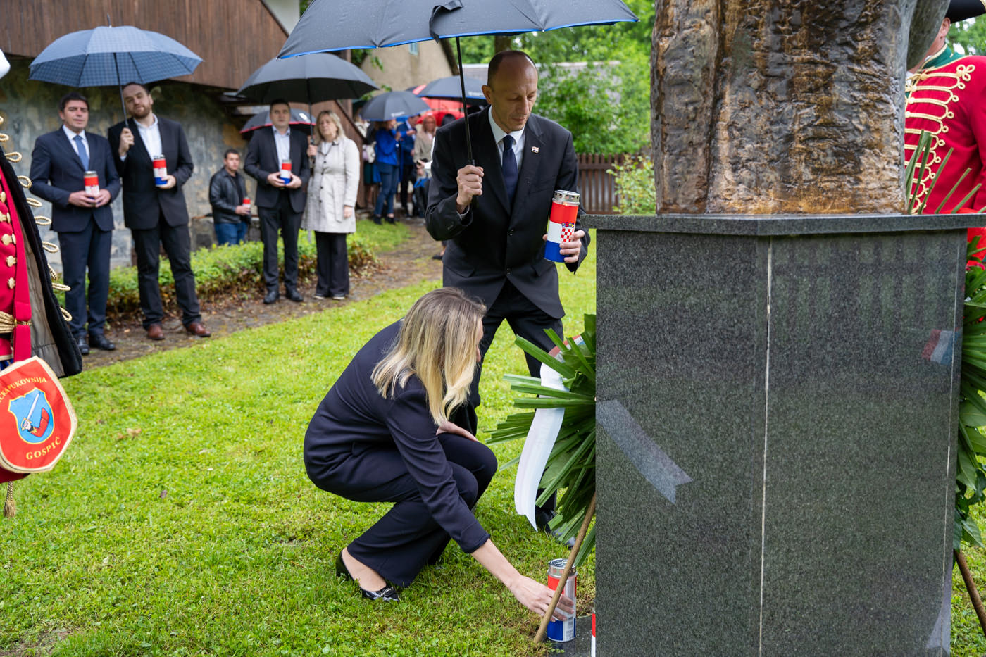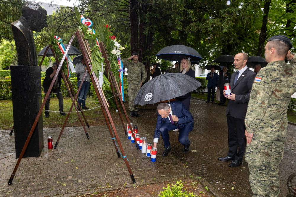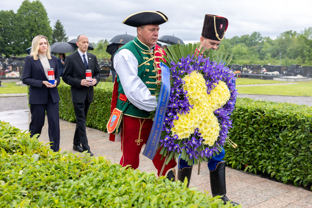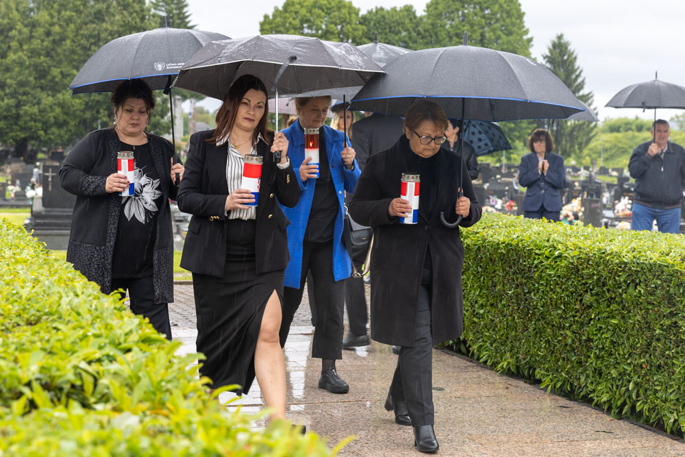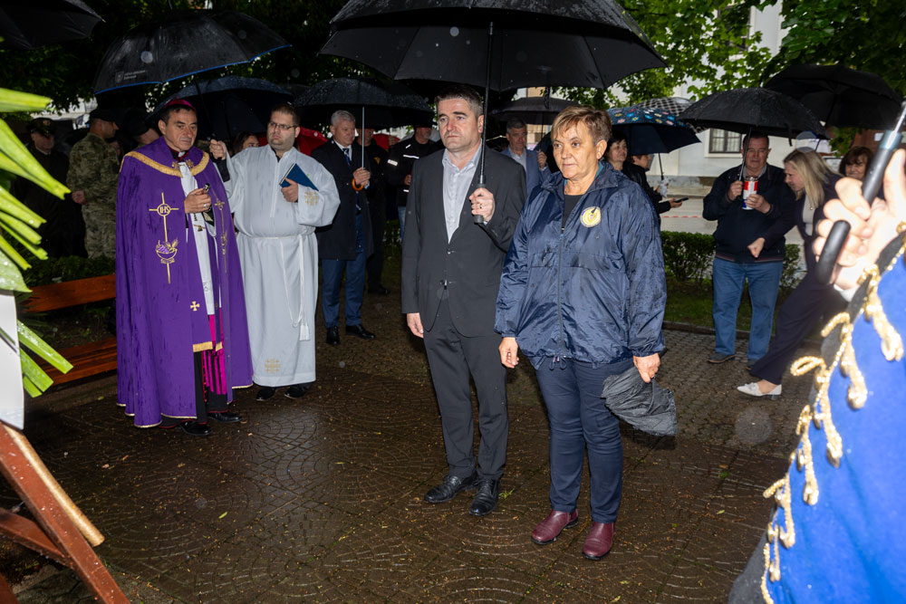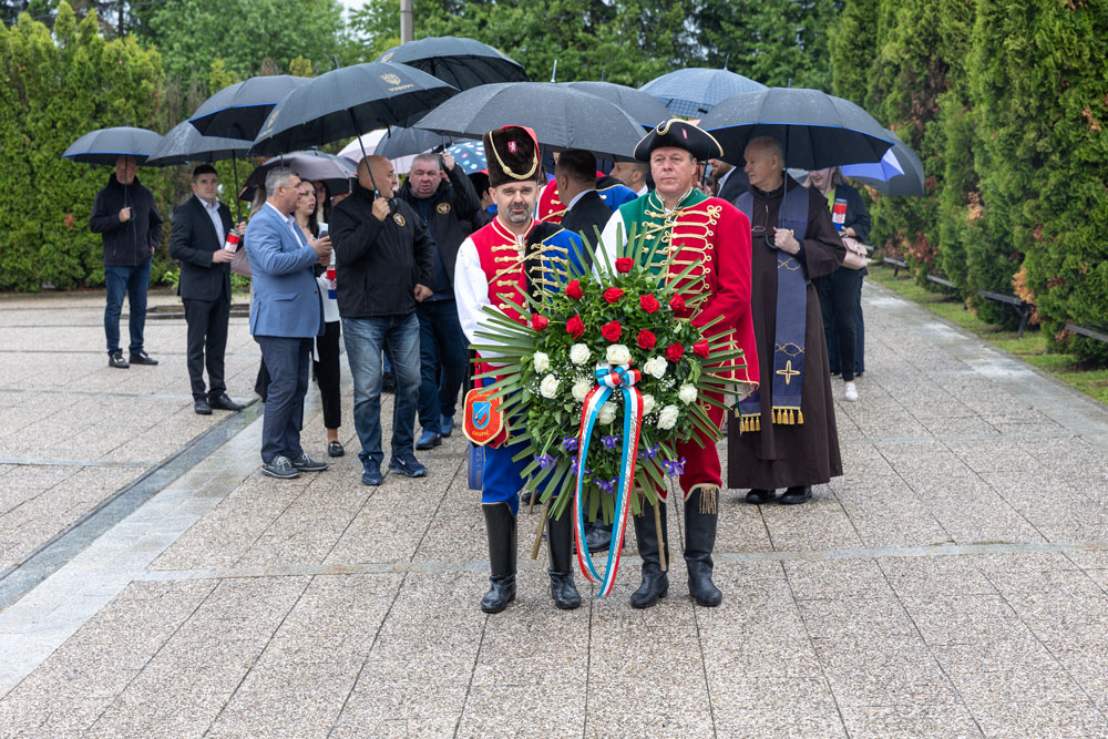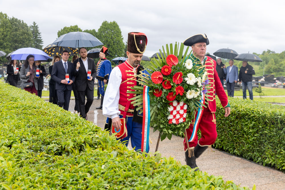 Nakon mise, upriličeno je zajedničko polaganje vijenaca i paljenje svijeća kod Spomenika poginulim braniteljima i civilnim žrtvama Domovinskog rata te biste prvog hrvatskog predsjednika dr. Franje Tuđmana na Trgu Alojzija Stepinca u Gospiću. Vijence i svijeće položili su ministar unutarnjih poslova i izaslanik Vlade RH Davor Božinović, državni tajnik Ministarstva hrvatskih branitelja Darko Nekić kao izaslanik ministra Tome Medveda, državni tajnik Ministarstva obrane Branko Hrg kao izaslanik ministra Ivana Anušića, župan ličko-senjski Ernest Petry i zamjenica župana Jasna Orešković Brkljačić, zamjenik gradonačelnika Grada Gospića Ivica Kovačević sa suradnicima, kao i predstavnici vojske, policije i braniteljskih udruga te pročelnici županijski odjela i ostali.