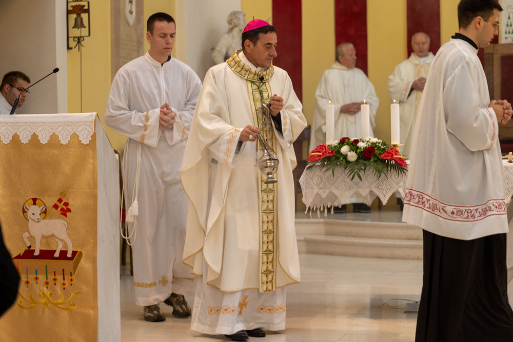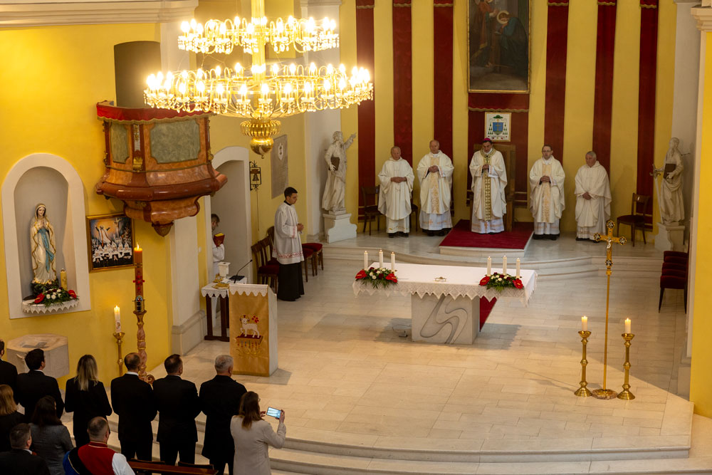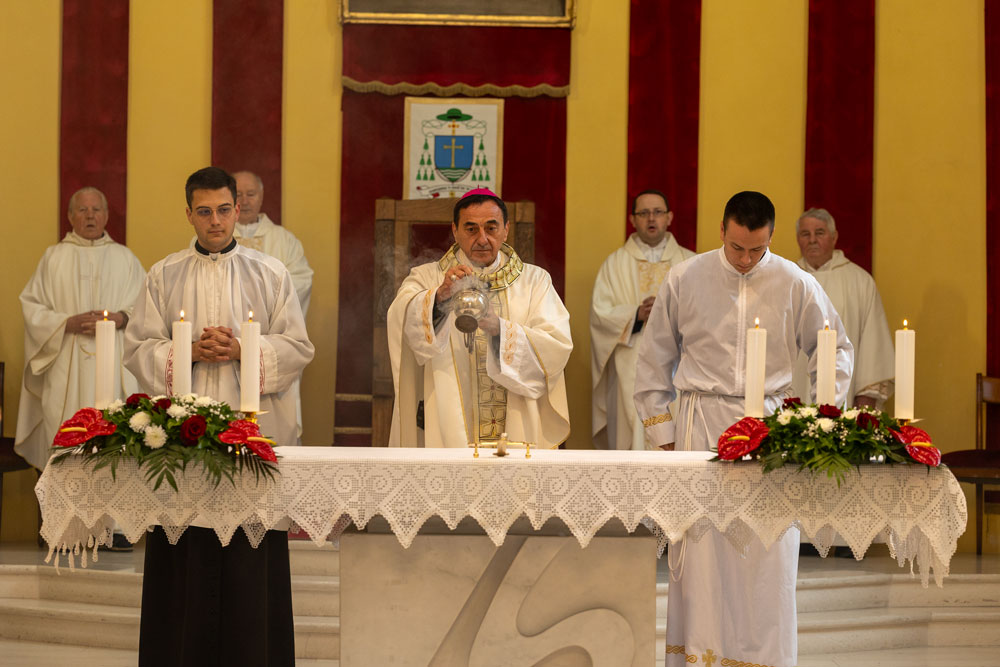 Središnji dio prijepodnevnog programa bila je Sveta misa u Katedrali Navještenja Blažene Djevice Marije, koju je predvodio gospićko-senjski biskup mons. Marko Medo, uz koncelebraciju kancelara Gospićko-senjske biskupije Mišela Grgurića i o. Ante Kneževića.