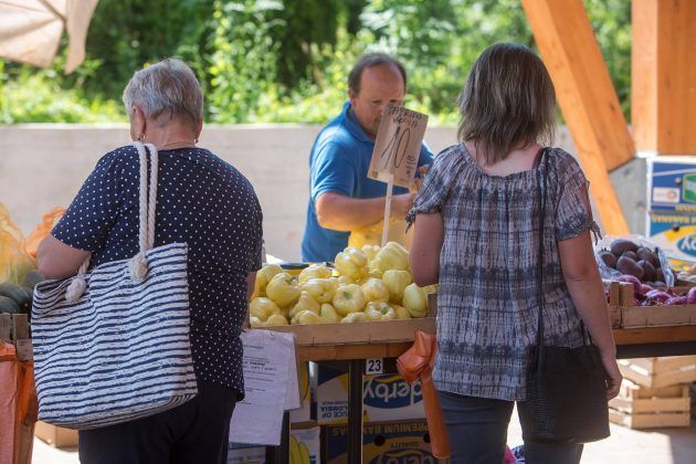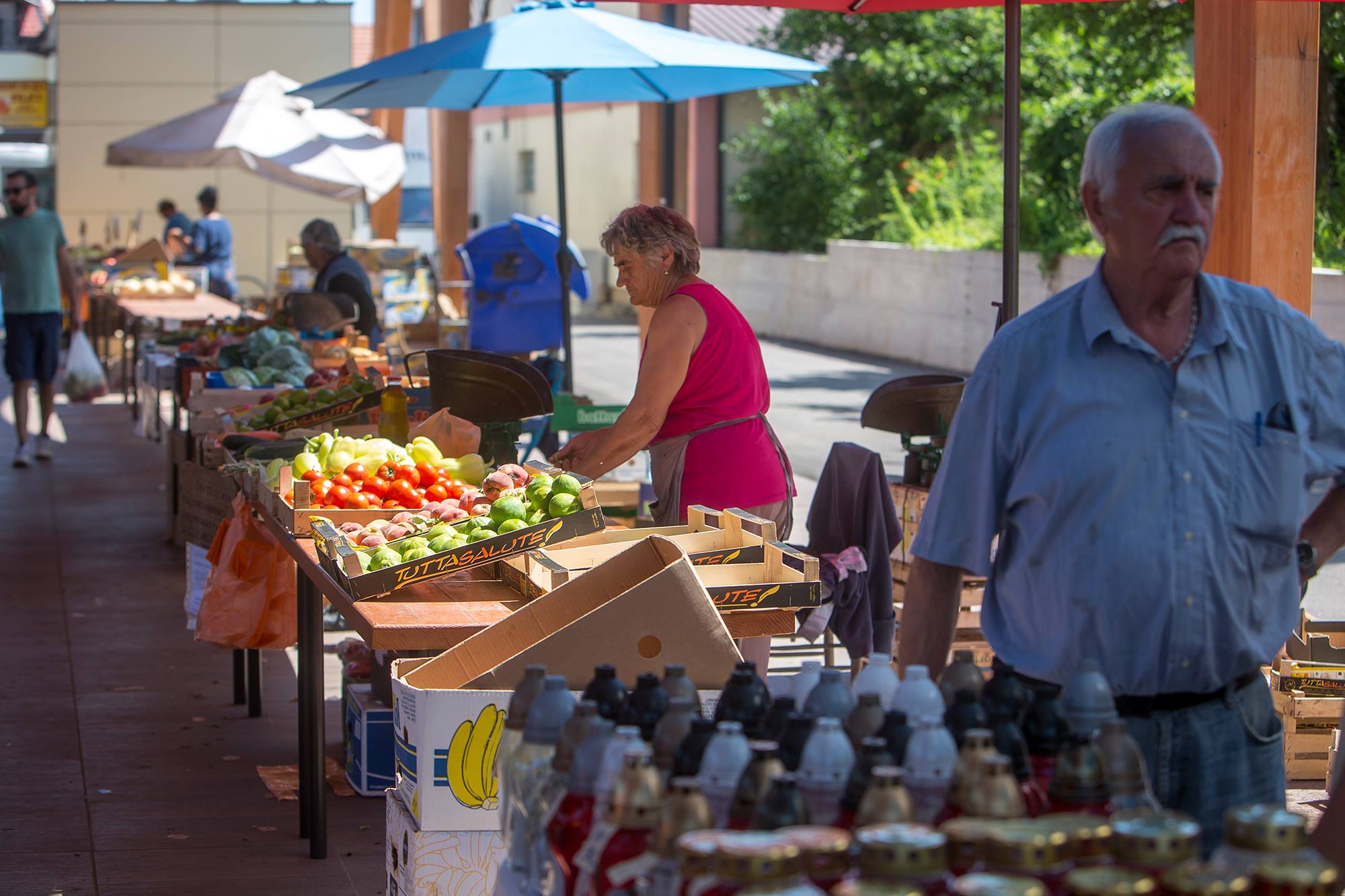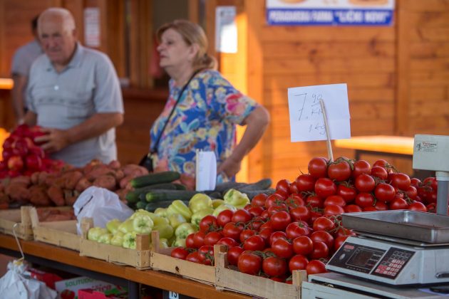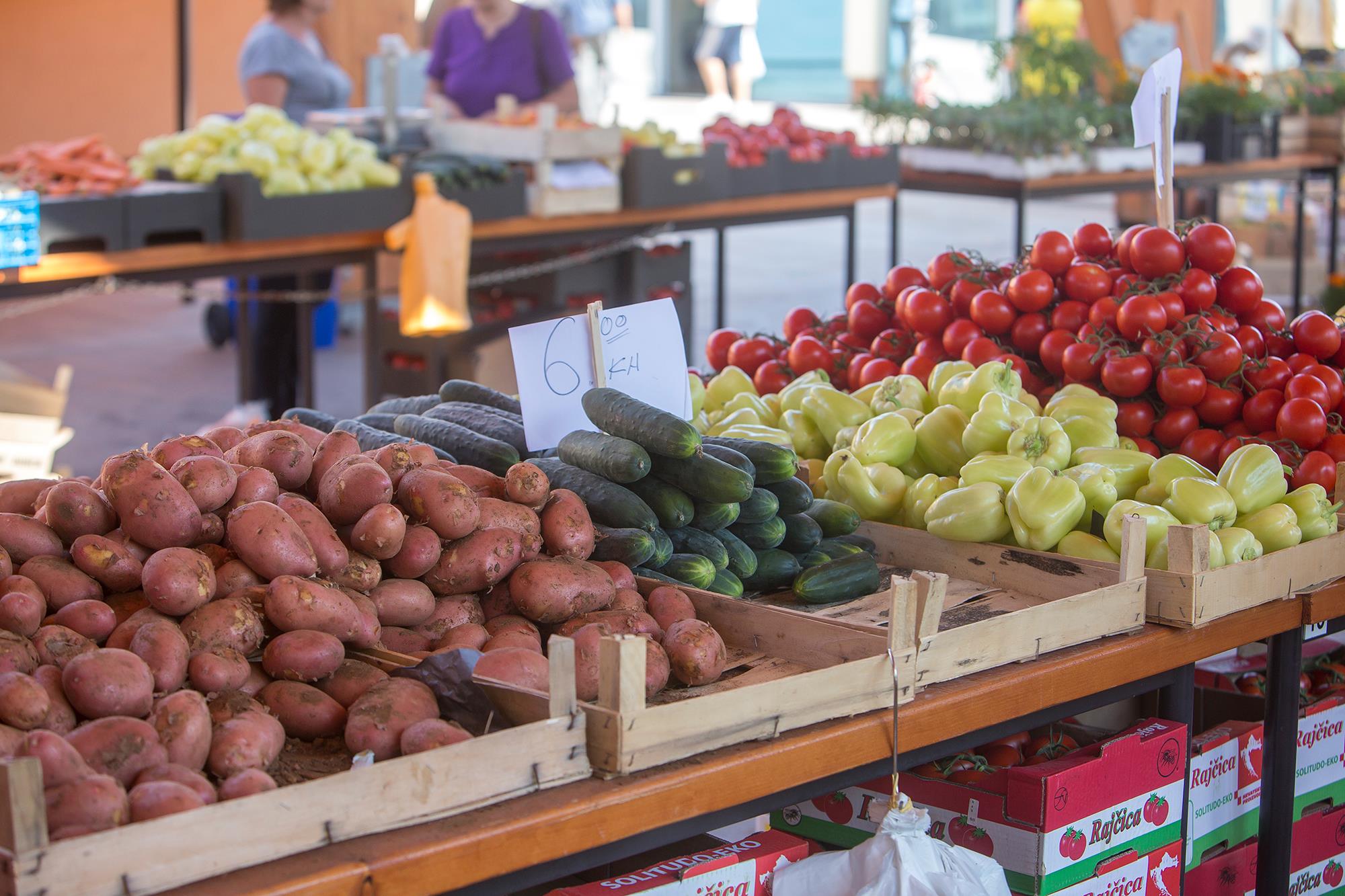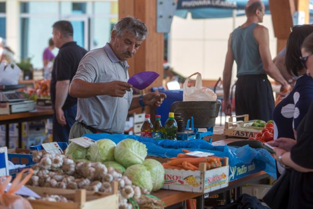 Zbog sutrašnjeg državnog praznika “Dan anti-komunista/fašista” tržnica je danas radila umjesto u petak. Danas se nudi paradajz, paprika i mladi krumpir, a ima i veliki izbor sadnica. Cijene su vidljive u galeriji fotografija: