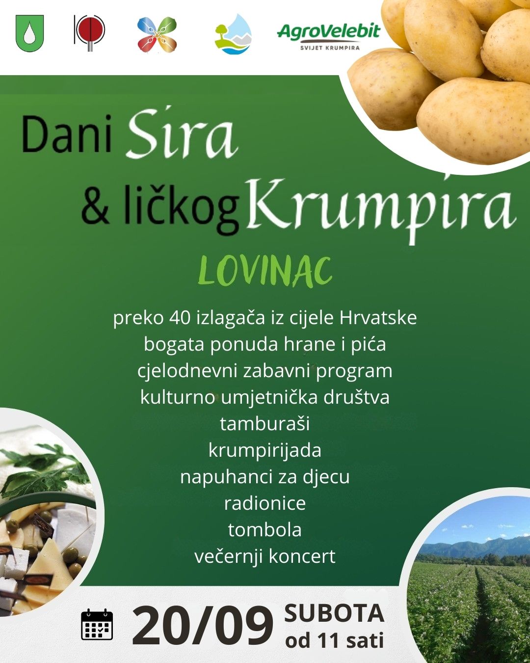 Lovinac će 20. rujna ponovno biti domaćin manifestacije Dani sira i krumpira koja svake godine privlači brojne posjetitelje. Program počinje u 11 sati, a centar mjesta pretvorit će se u šarenu pozornicu s bogatom ponudom više od 40 izlagača iz svih krajeva Hrvatske. Na štandovima će se moći pronaći lički krumpir, sjemenski krumpir, razne vrste sira i mliječnih proizvoda, svježe voće i povrće, zimnica, gljive, med, pekmezi, kruh, kolači, sokovi, rukotvorine i prirodna kozmetika. Posjetitelji će uživati u raznolikoj gastronomskoj ponudi uz obilje hrane i pića.