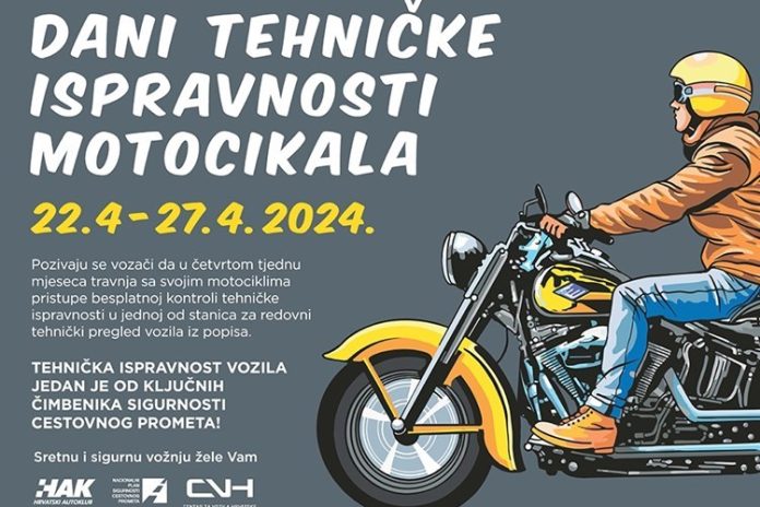 Akcija „Dani tehničke ispravnosti motocikala“ provodit će se u 38 stanica za tehnički pregled vozila na području cijele Republike Hrvatske, pod pokroviteljstvom Nacionalnog plana sigurnosti cestovnog prometa, u suradnji s Hrvatskim autoklubom i Centrom za vozila Hrvatske.
