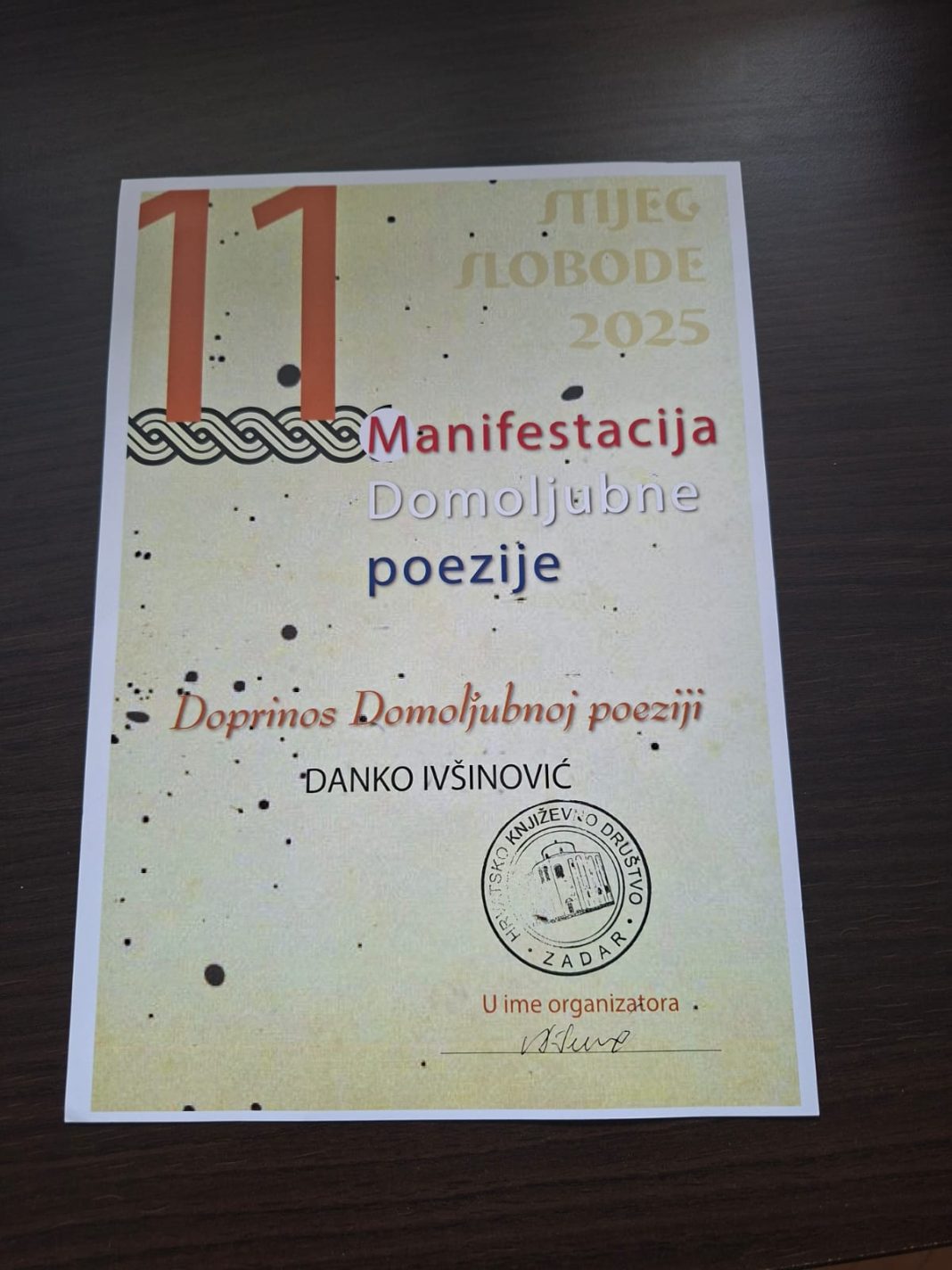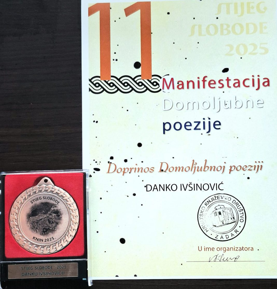 Na jedanaestoj pjesničkoj manifestaciji domoljubne poezije Stijeg slobode, Knin – 2025., održanoj 2. kolovoza na ljetnoj pozornici Kninske tvrđave pod visokim pokroviteljstvom Ministarstva hrvatskih branitelja, gospićki pjesnik Danko Ivšinović nastupio je po četvrti put na finalnoj večeri. Ovoga puta, izvan konkurencije, primio je nagradu za doprinos domoljubnoj poeziji. Istu je nagradu dobila i Udruga Frankopan iz Zagreba.