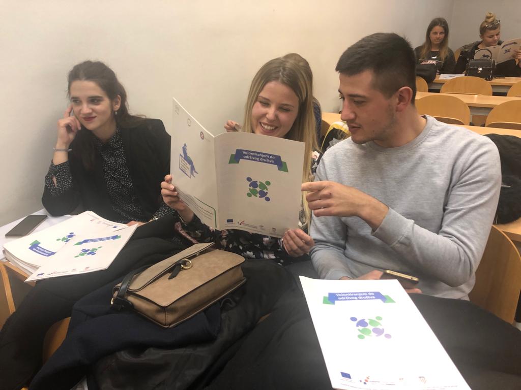 Kratko predavanje održala je Martina Jurković bacc.ing.traff, odgovorna za provedbu projekta, istaknuvši važnost mišljenja studenata koje će imati mogućnost izraziti i obraniti kroz studentske debate i time izravno doprinijeti razvoju organizacija civilnog društva i volonterstva na našem području.