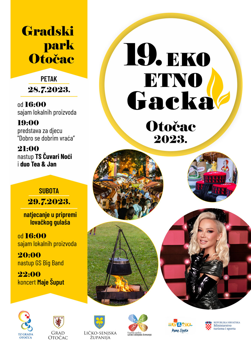 Rezervirajte 28. i 29. srpnja za manifestaciju Eko Etno Gacka jer Vas u gradskom parku u Otočcu očekuje odlična atmosfera, bogat zabavni program i pregršt finih specijaliteta.