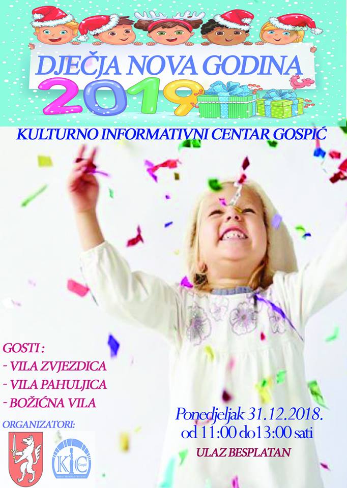 Kažu kako najveći čovjek u duši uvijek ostaje dijete! Kako bi naši najmlađi pripadnici društva u Novu 2019. godinu ušli radosni, uz puno smijeha, igre i dobre zabave, Grad Gospić i Kulturno Informativni Centar Gospić organiziraju doček „Dječje Nove godine“ 31. prosinca 2018. godine od 11:00-13:00 sati u velikoj dvorani KIC-a.