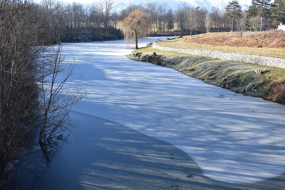 Zbog niskih temperatura na nekoliko mjesta led je sasvim  okovao rijeku Novčicu. Ljepotu prizora remete jedino mjestimične dječje stope, tamo gdje su klinci okušavali svoju „hrabrost“. Ili bolje reći nesmotrenost jer se igre na ledu lako pretvore u tragediju.
