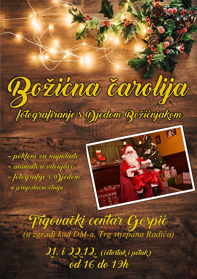 U četvrtak i petak 21.i 22. prosinca u vremenu od 16 do 19 sati dođite, dovedite najmlađe i omogućite im nezaboravan događaj, razgovaranje i fotografiranje s Djedom Božićnjakom.