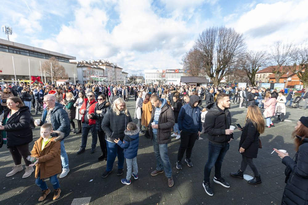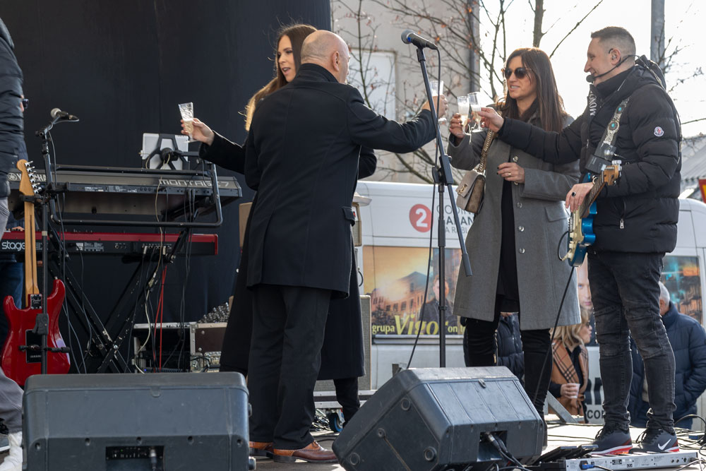 Umjesto najavljene kiše, u podne je sunce sijalo za Doček 2023. godine na Trgu Stjepana Radića u Gospiću.